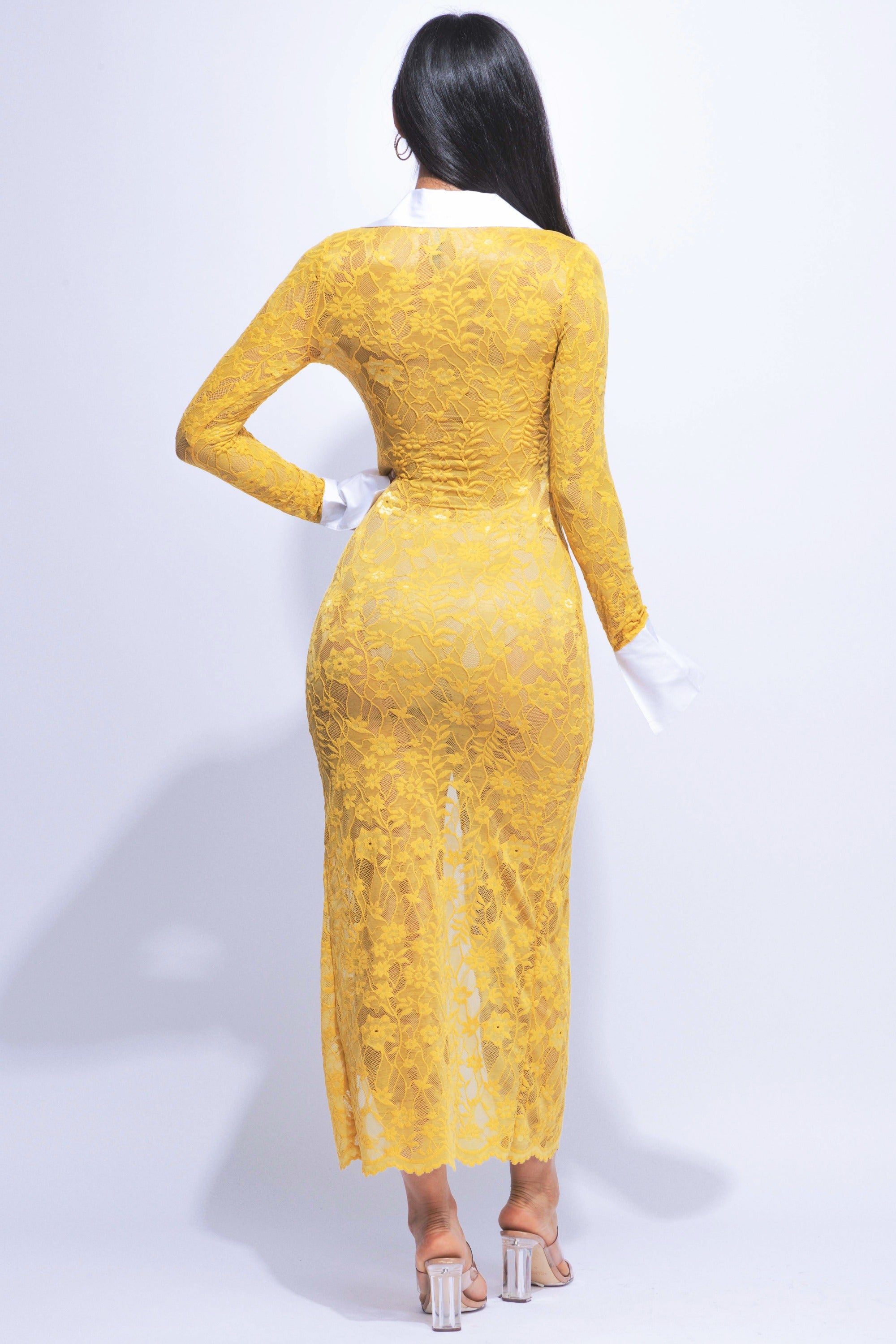 • Long sleeve • Lace fabric • Maxi dress with side slit • Big neck collar & sleeve end •...