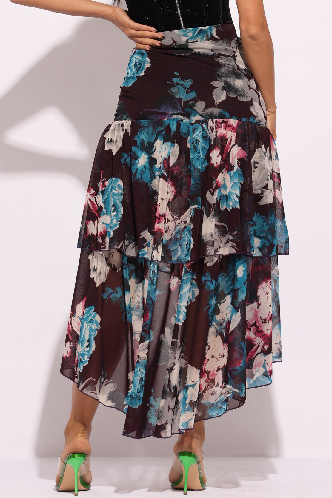 Elevate your feminine flair with our Asymmetrical Hem Floral Skirt. The playful asymmetry meets a vibrant floral pattern, creating a...