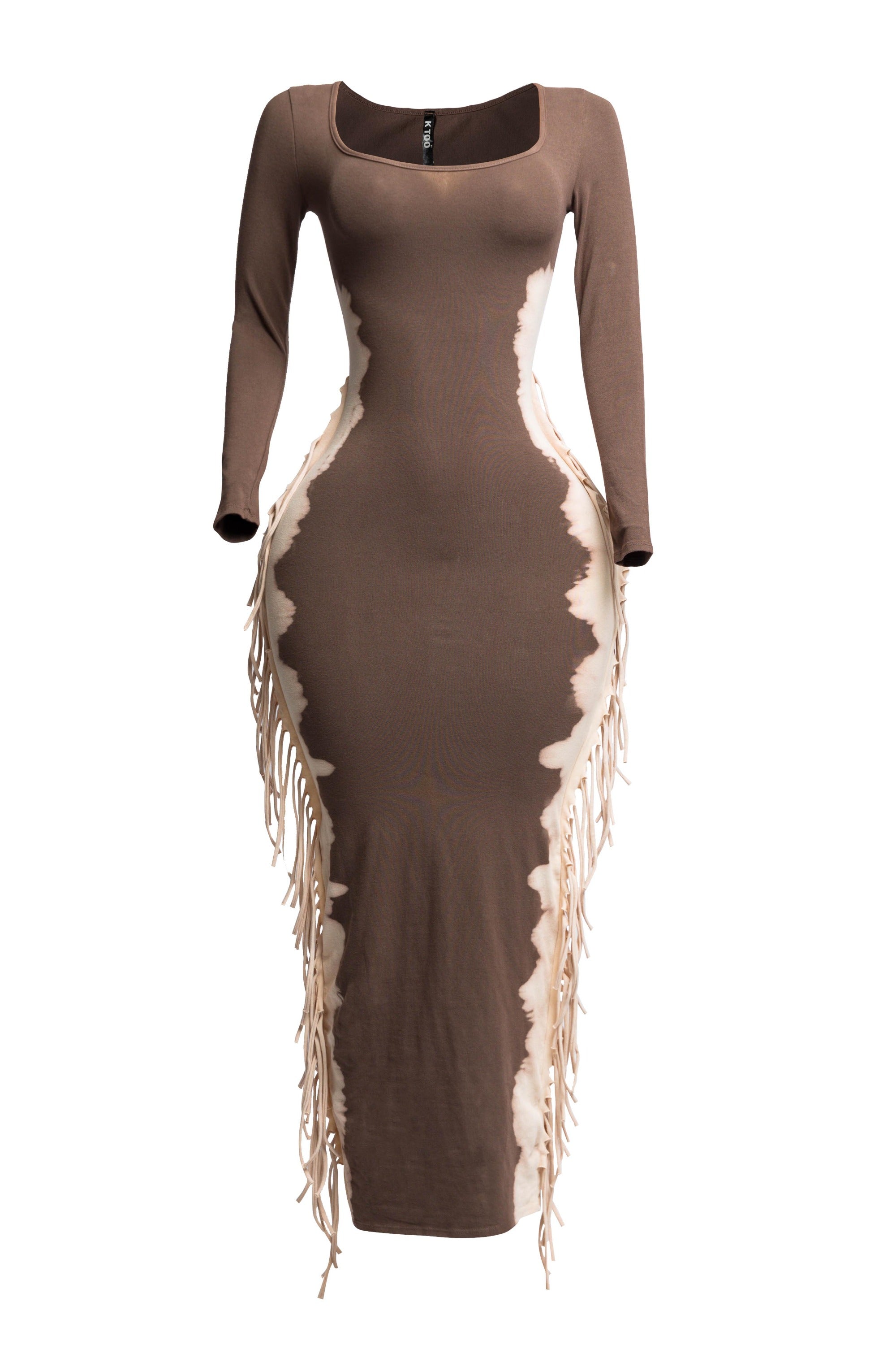 Bleached two tone colorway side fringe maxi dress