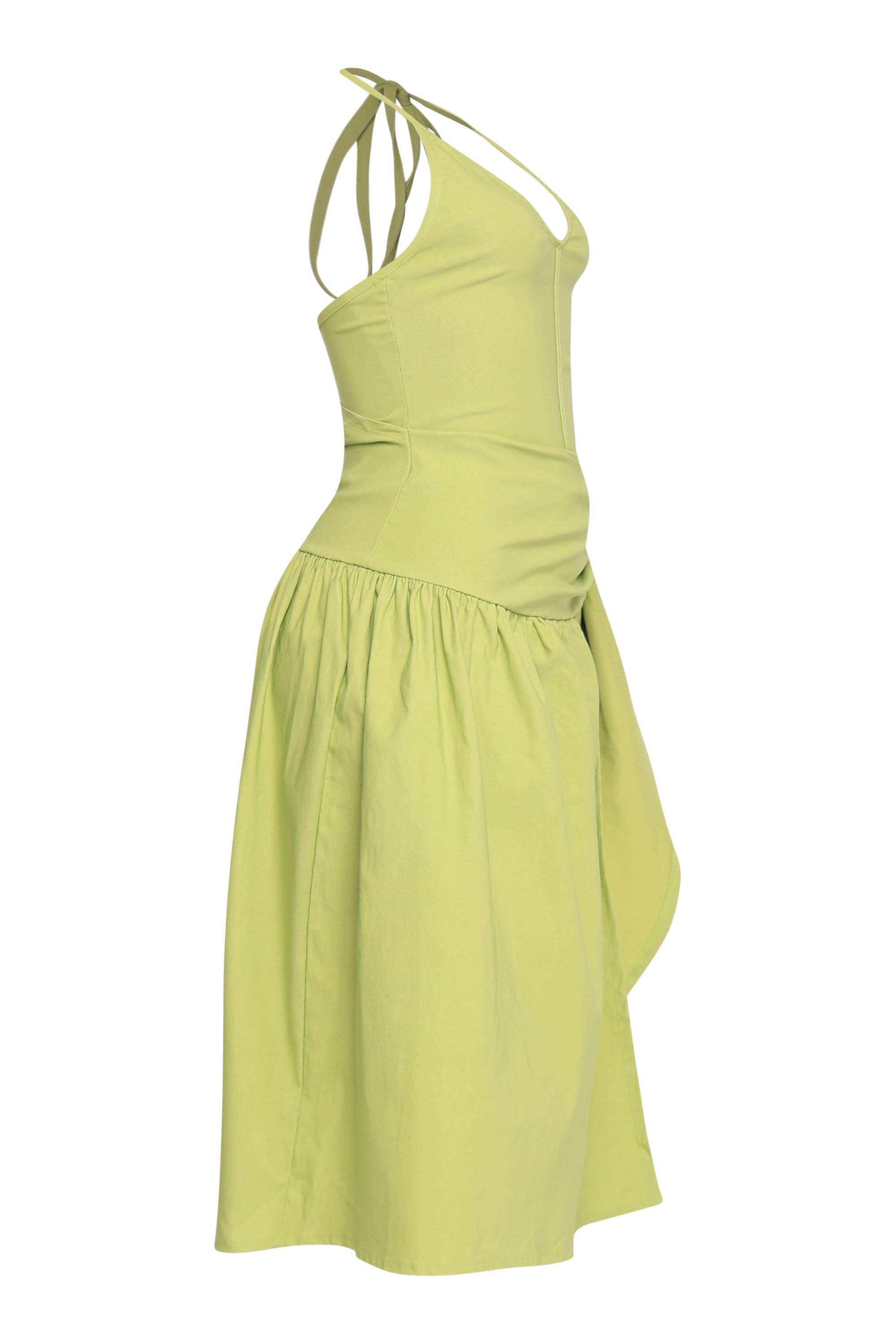 Coastal Flirt Halter Midi Dress with Tie Waist Detail Sage