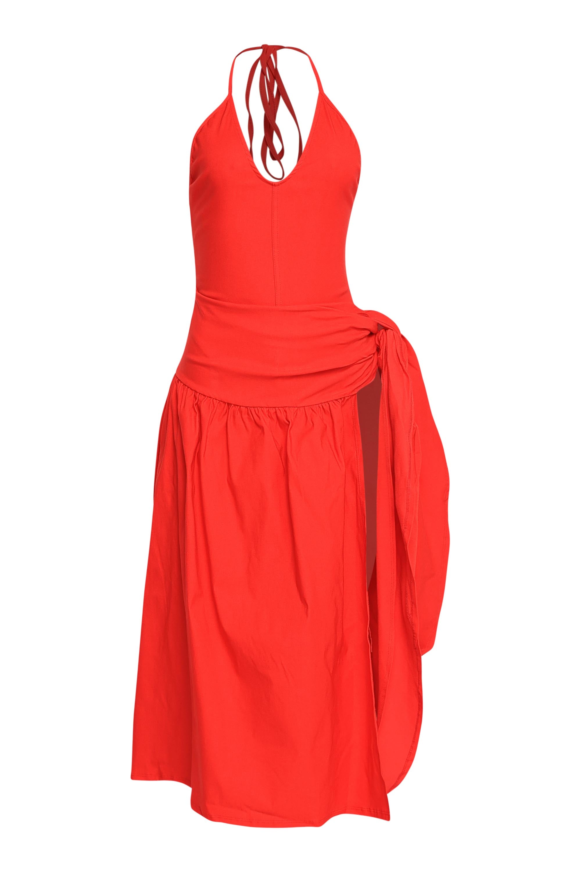 Warning: temperatures may rise. This halter midi dress is a full-body serve in every color. Designed with a curve-hugging bodysuit...