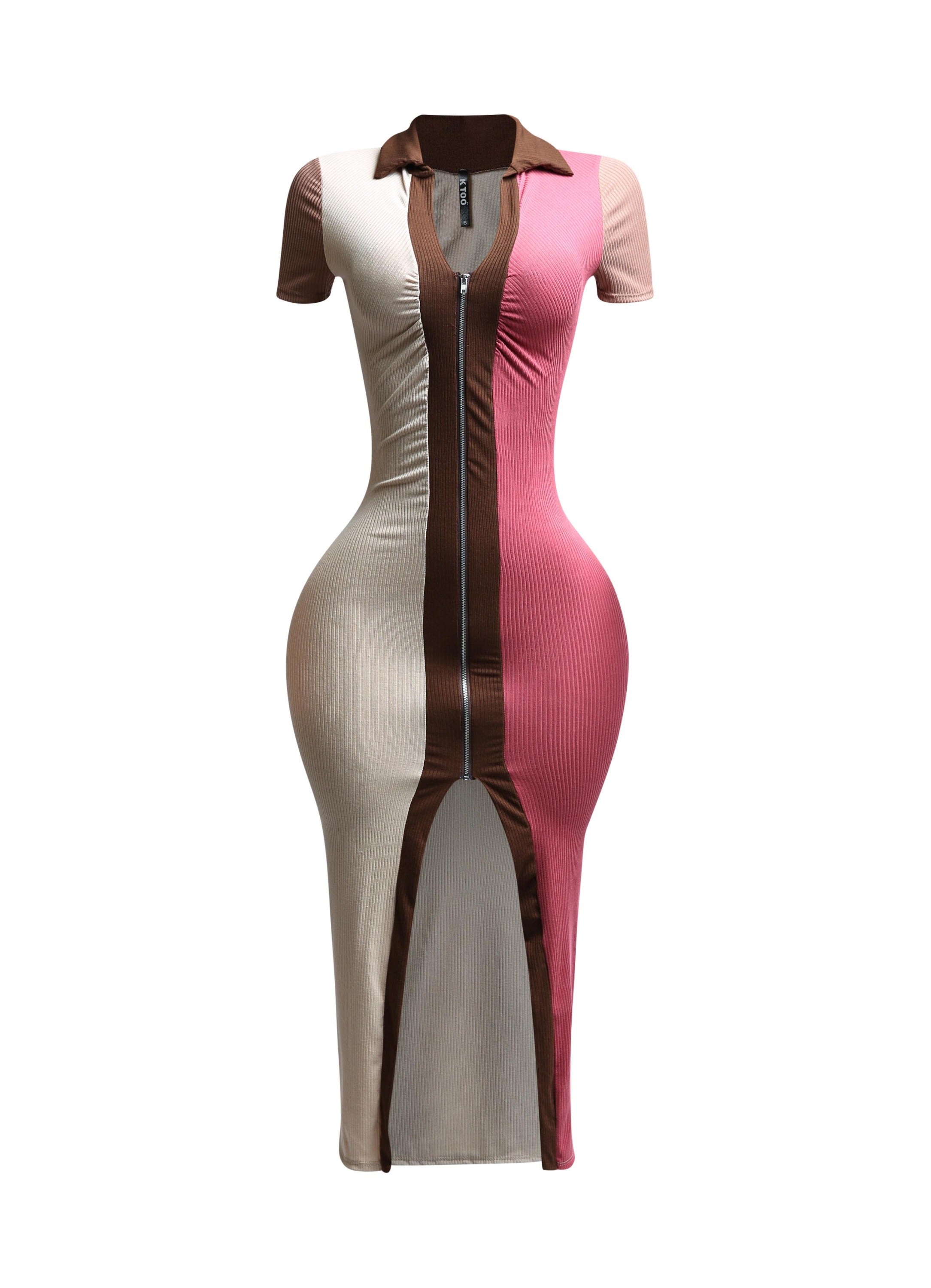 Color blocked zipper closure midi dress