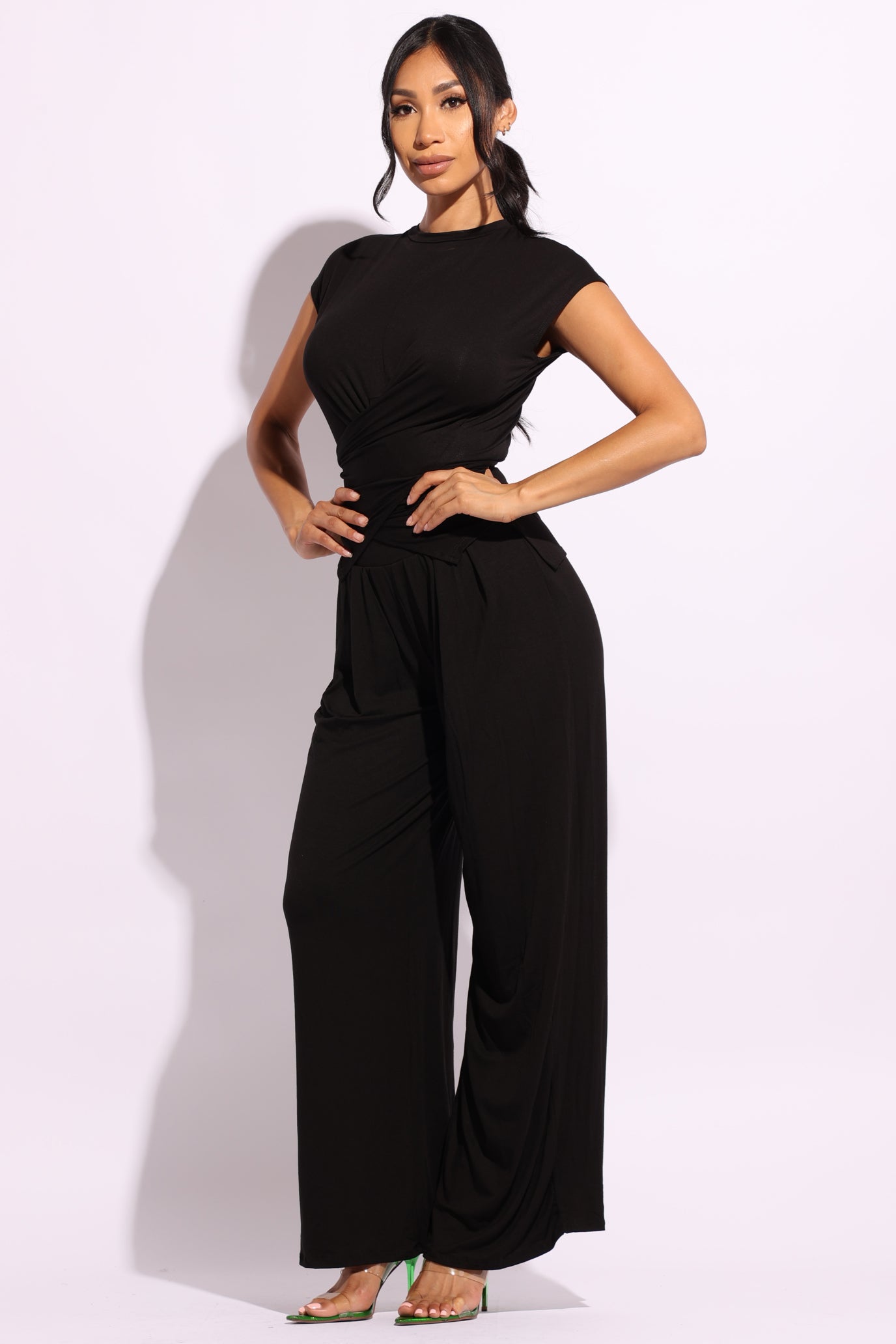 Revamp your style with our Cross Wrap Front Buttons Back Set. The cross wrap front adds a chic twist, while...
