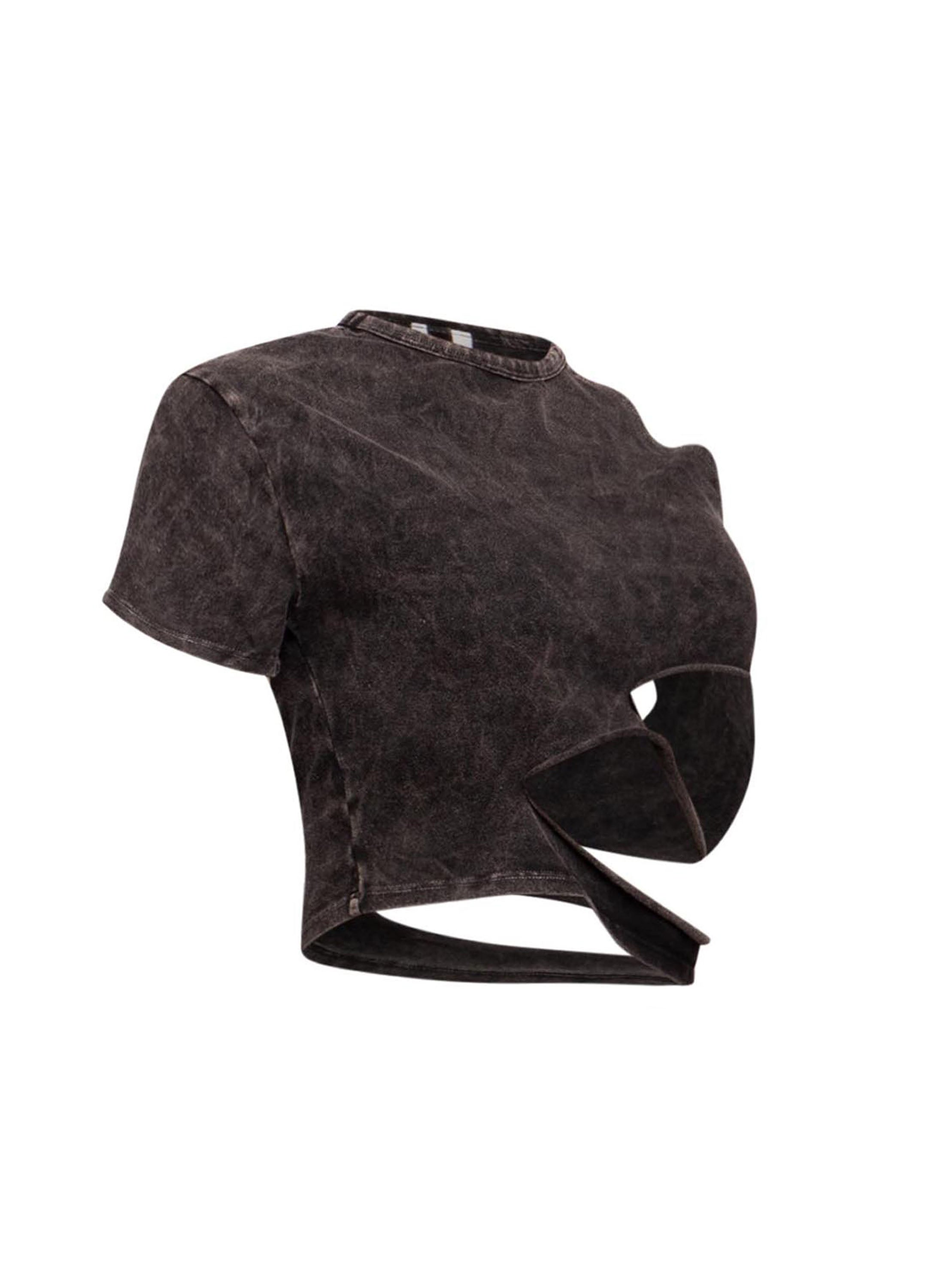 Cutout detailed washed t shirt