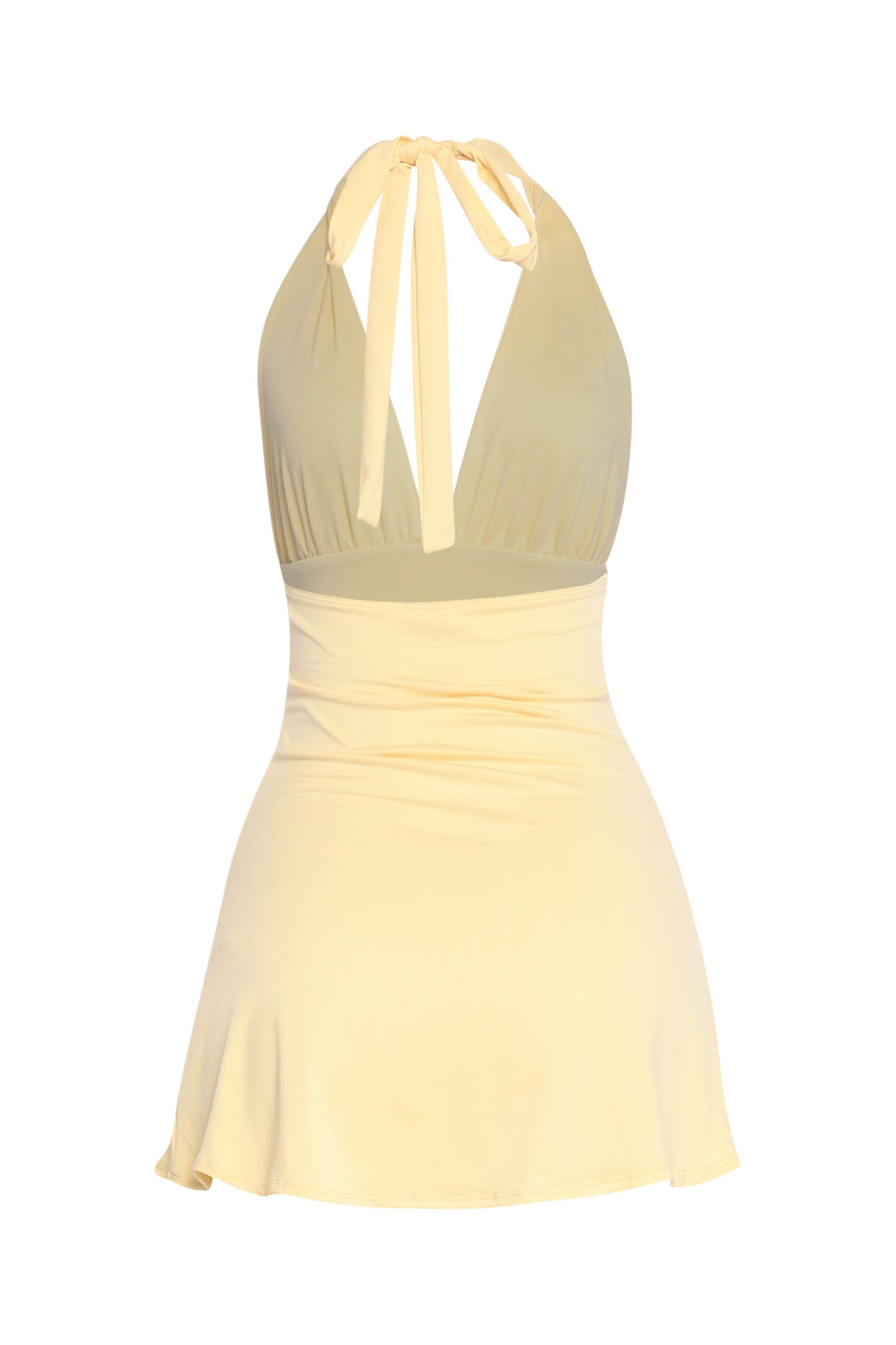 Dive Into Me Halter Mini Dress with Tie Back and Plunge
