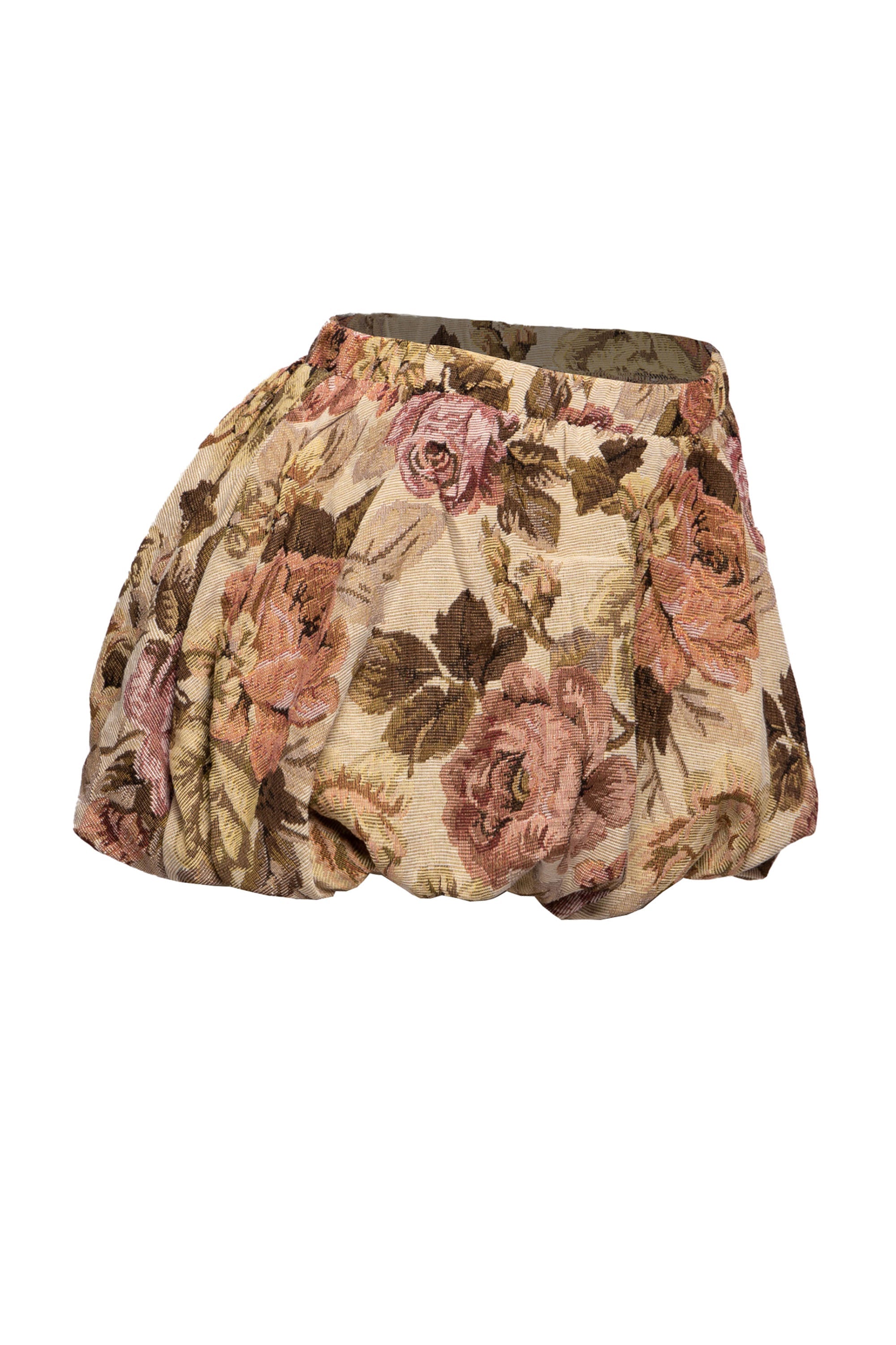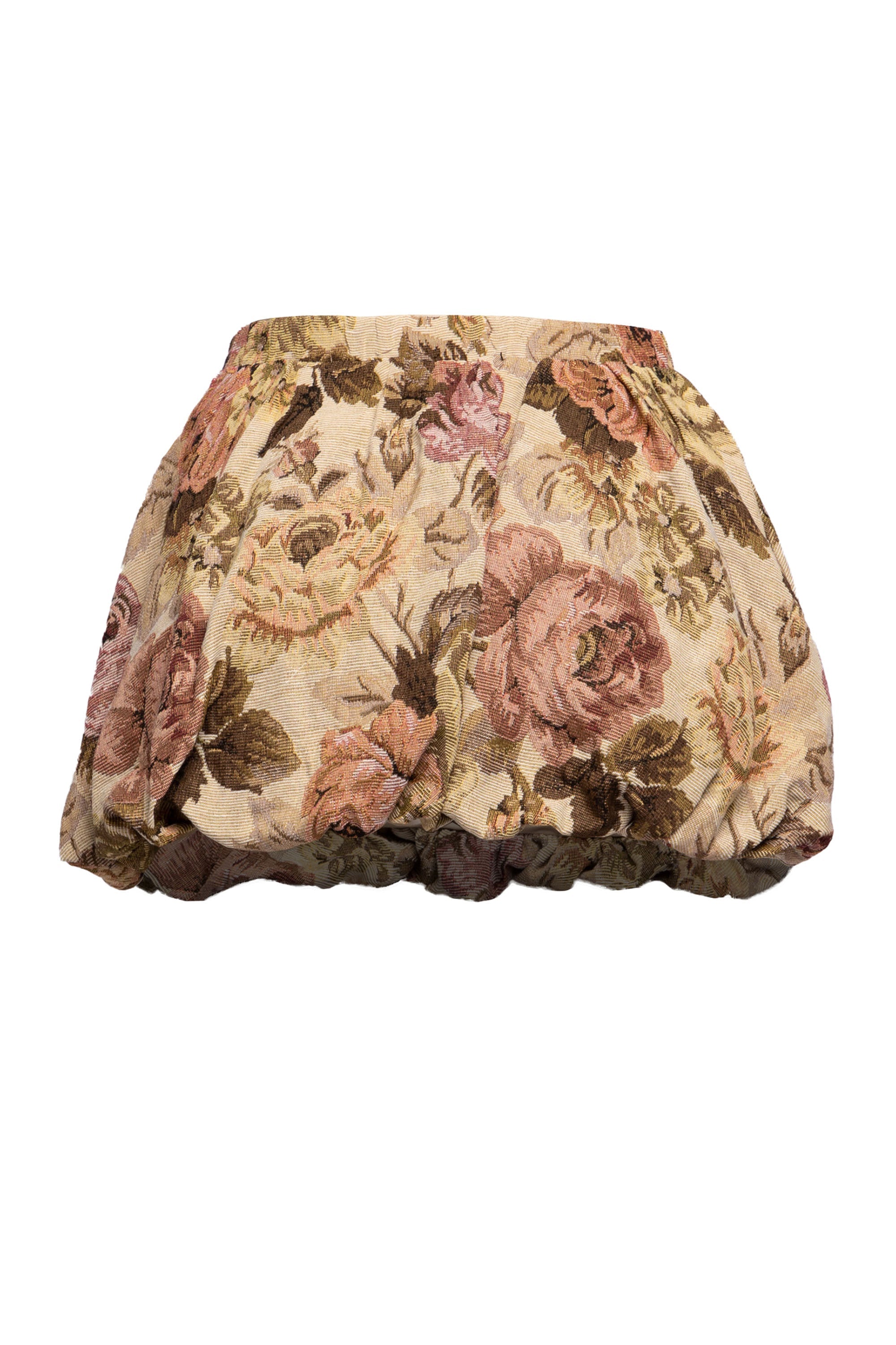 • Floral designed • Bubble hem • Mini skirt • Waist band • Pull on style • SELF:100%Polyester • LINING:100%Polyester...