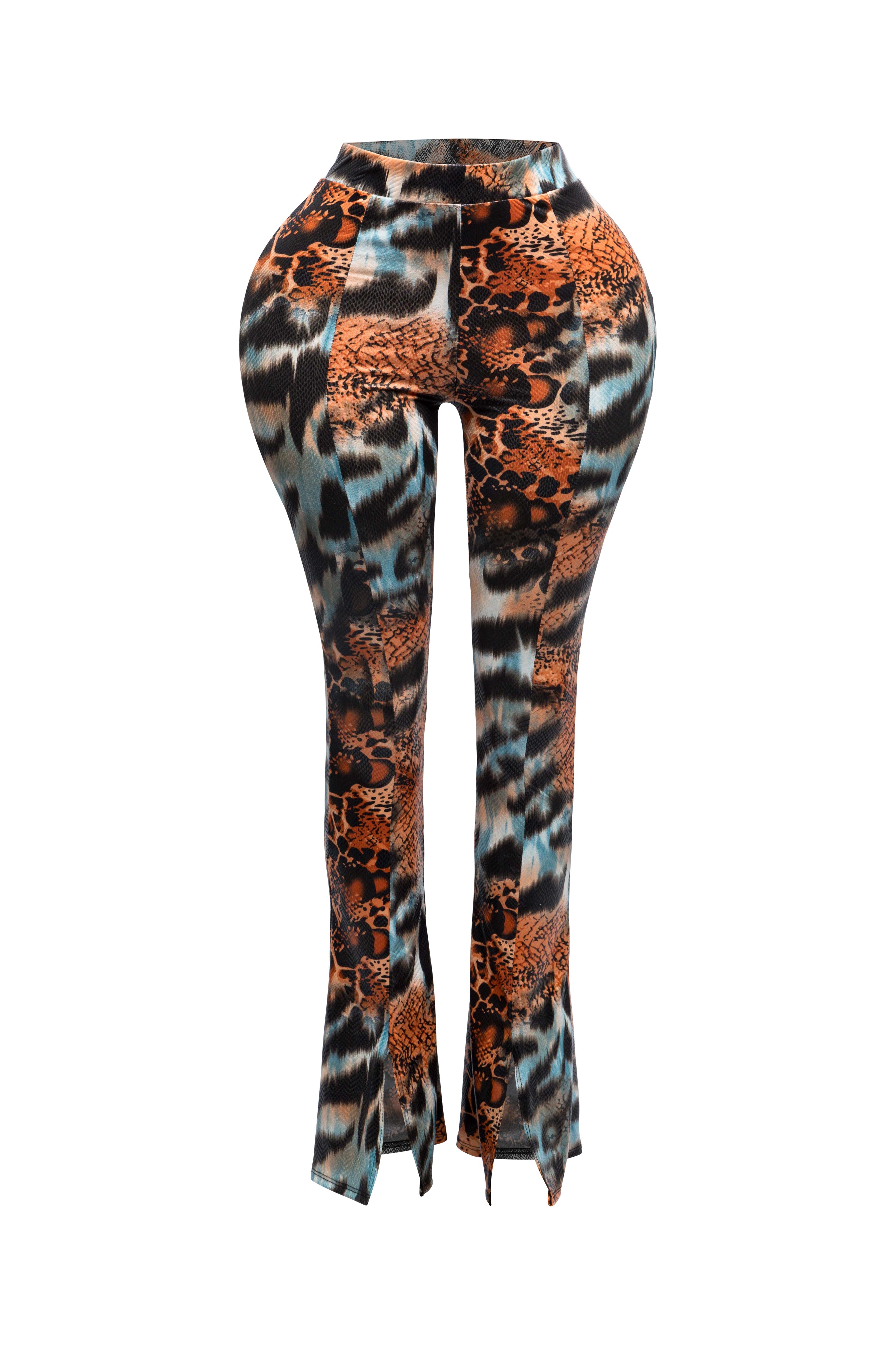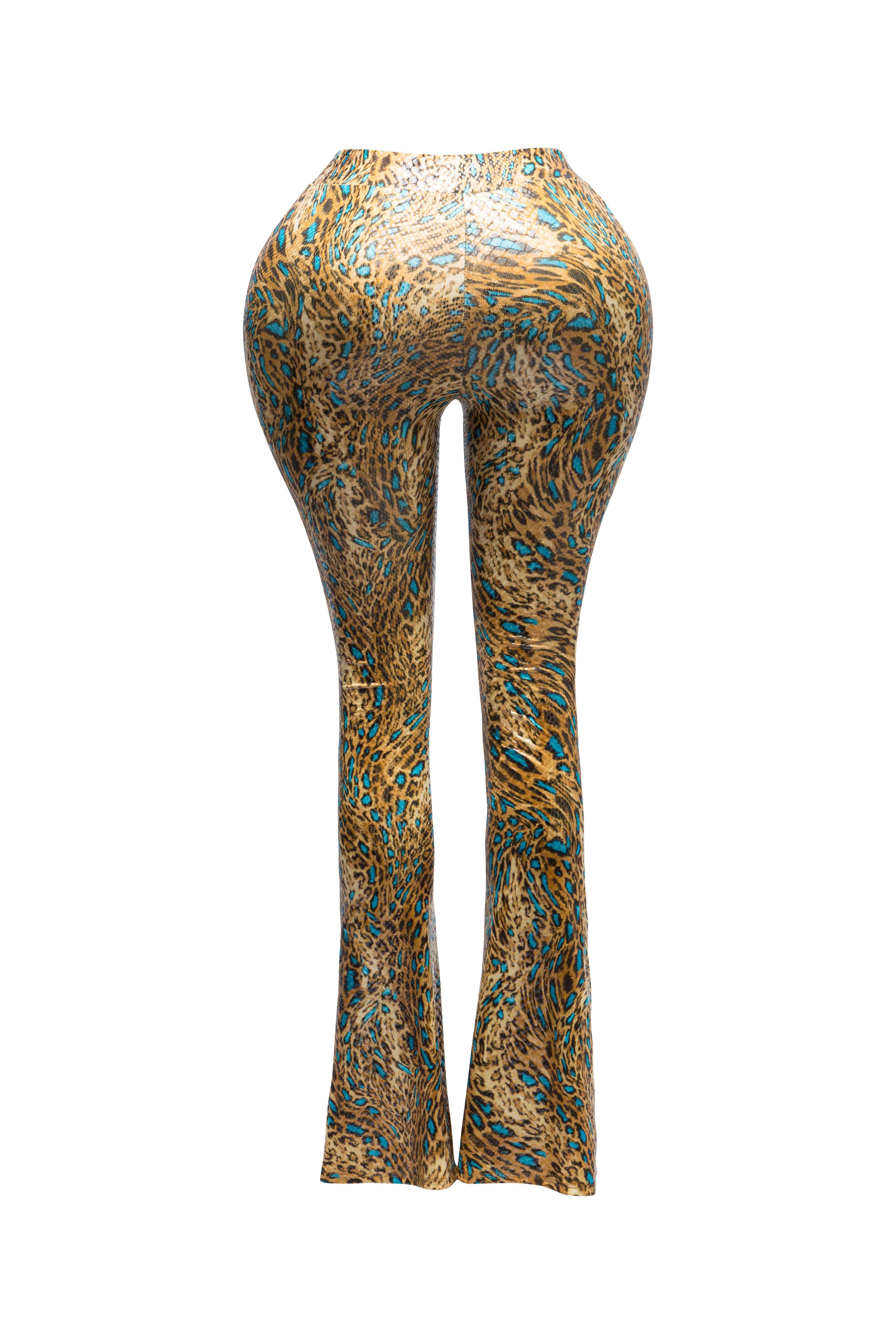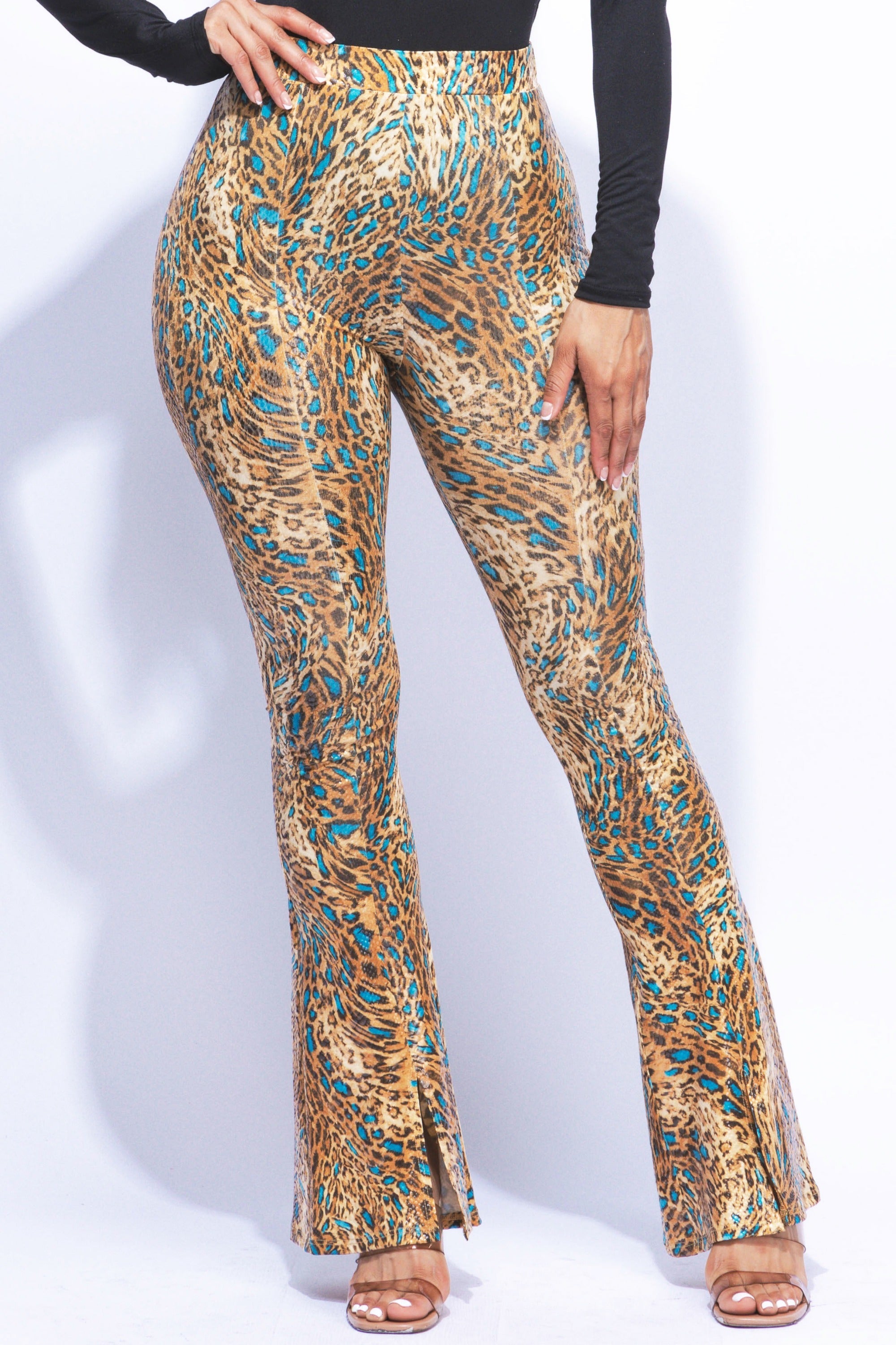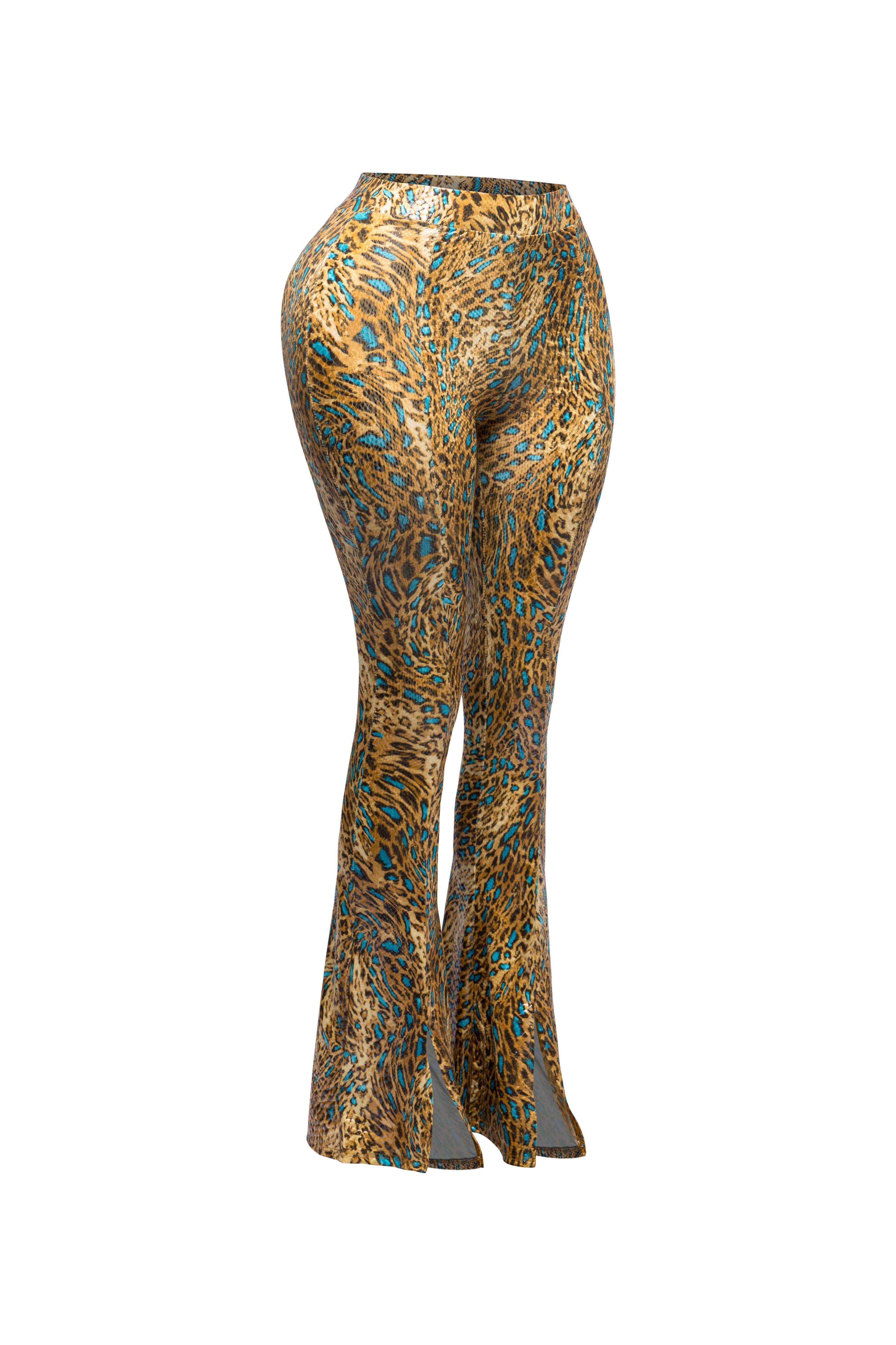 Step up your fashion game with our Foiled Animal Printed Slit Hem Flared Pants. These stylish pants feature a striking...