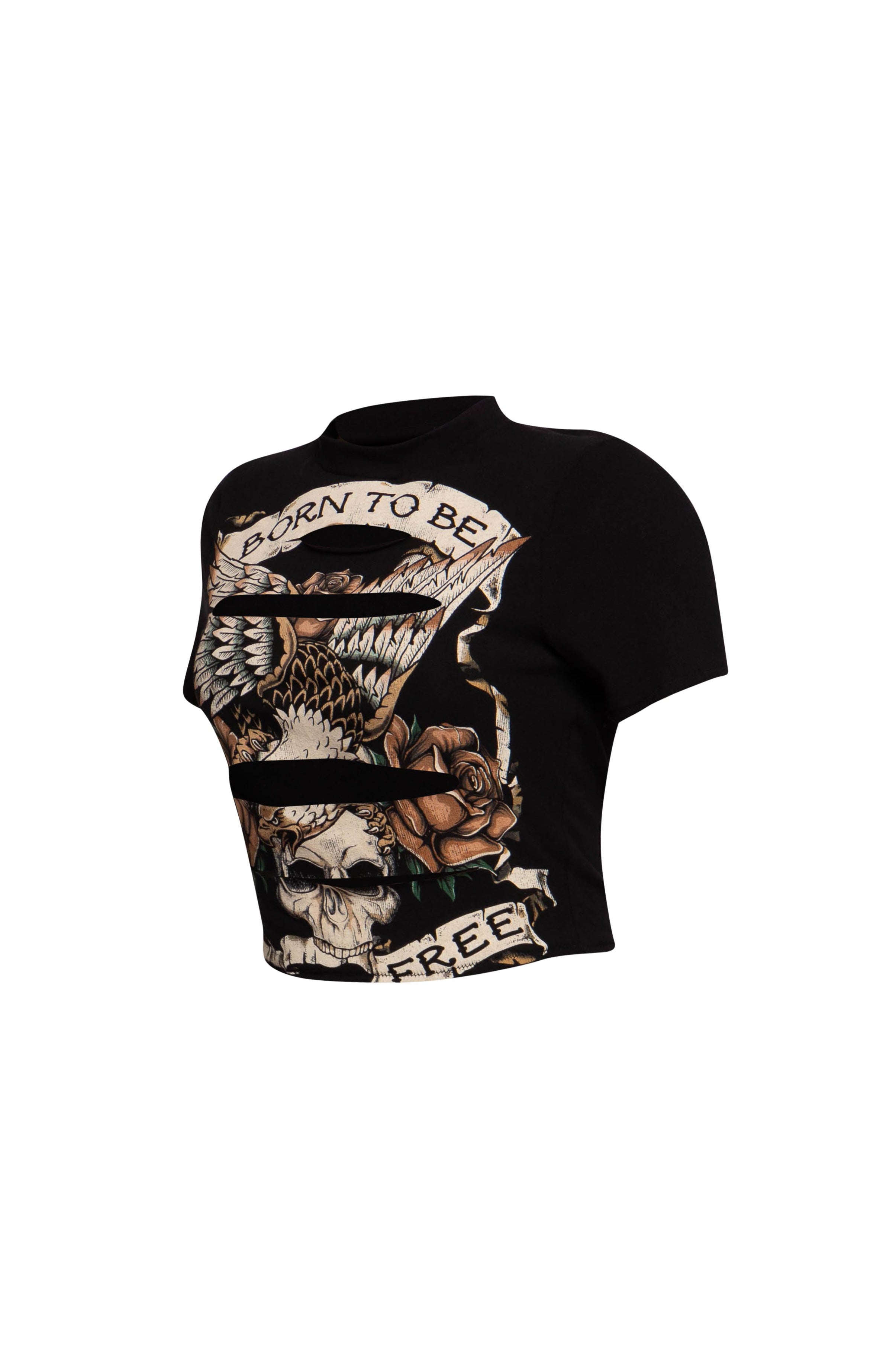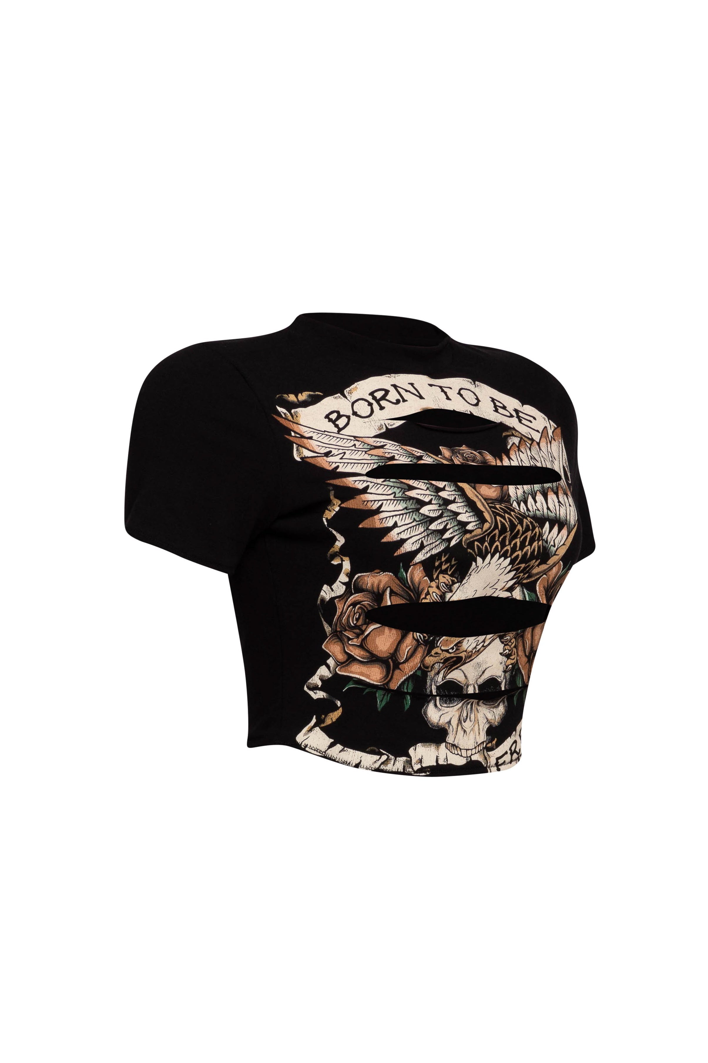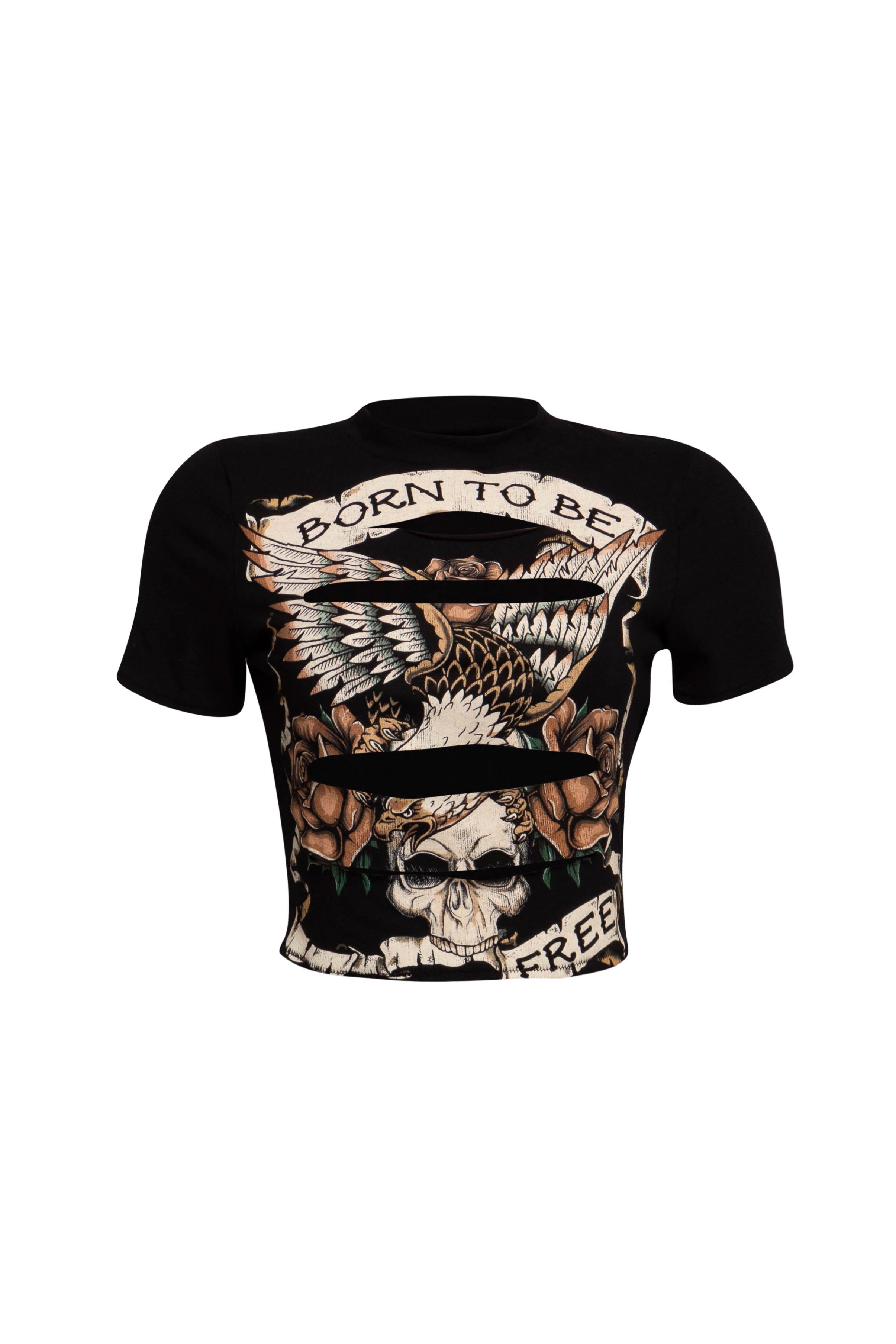 • Crewneck• Short sleeves• Length: 16"• Striking graphic eagle and skull design• Empowering “BORN TO BE FREE” slogan• Cropped fit•...