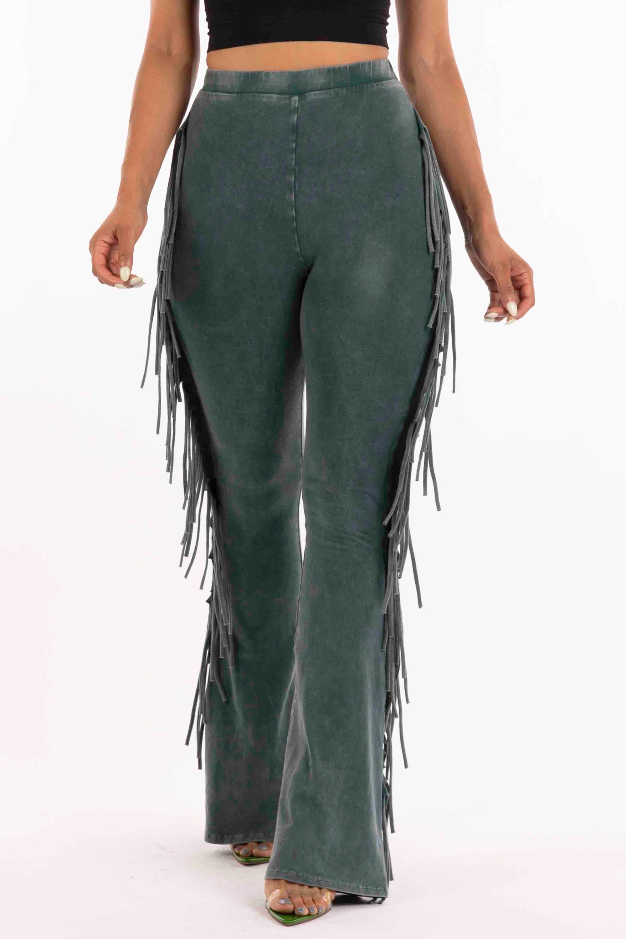 • Available in Multiple Colors• Pull on • Highwaisted• Elastic waist• Fringe detailed side seam• Flared hem• 33" inseam• 95% Cotton...