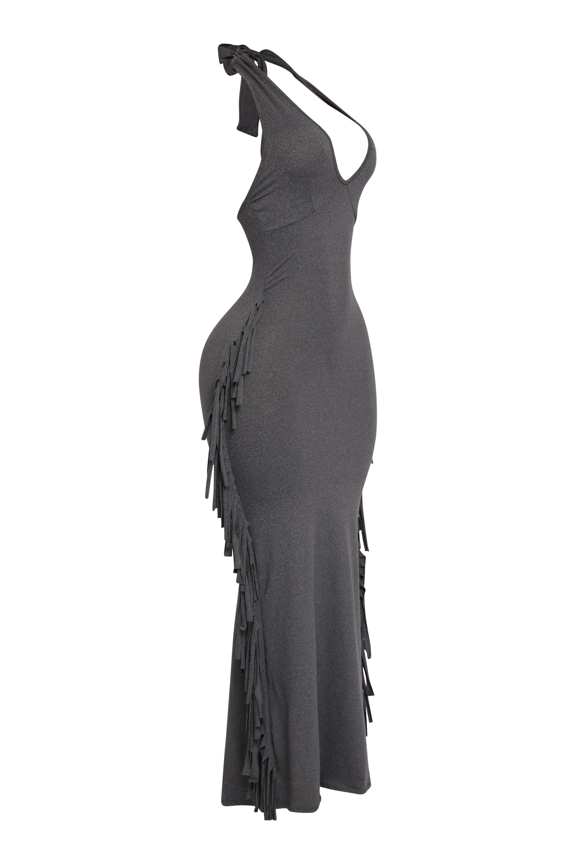 Step into full-on fringe fantasy with the Fringe Theory Halter Maxi Dress. This sultry halter-neck design features a sleek bodycon...