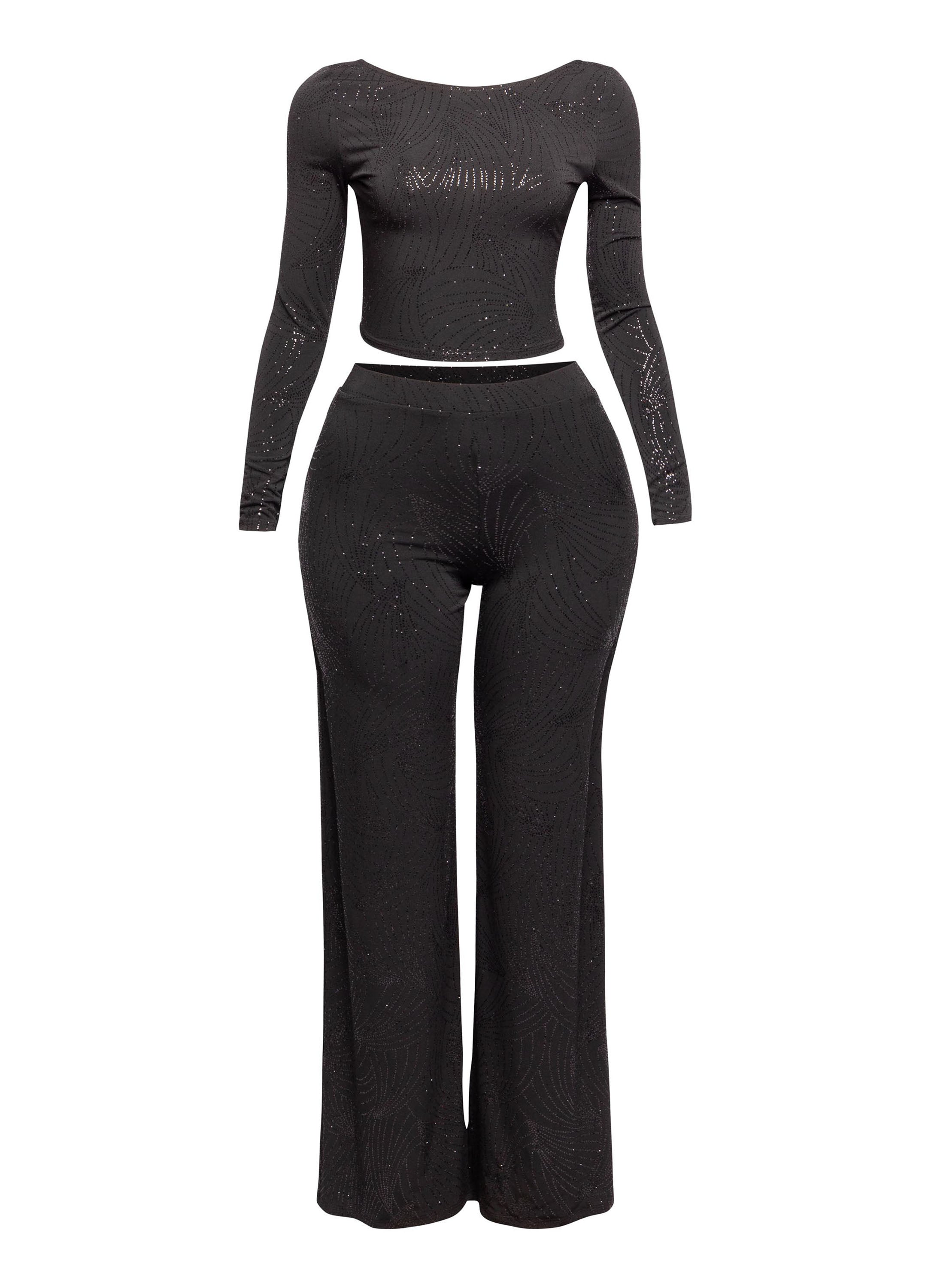 • Set• Boat neck• Open Back Top• Long Sleeve • Top Length: Approx 17"• Elastic waistband • Straight leg comfortable fit• Inseam...