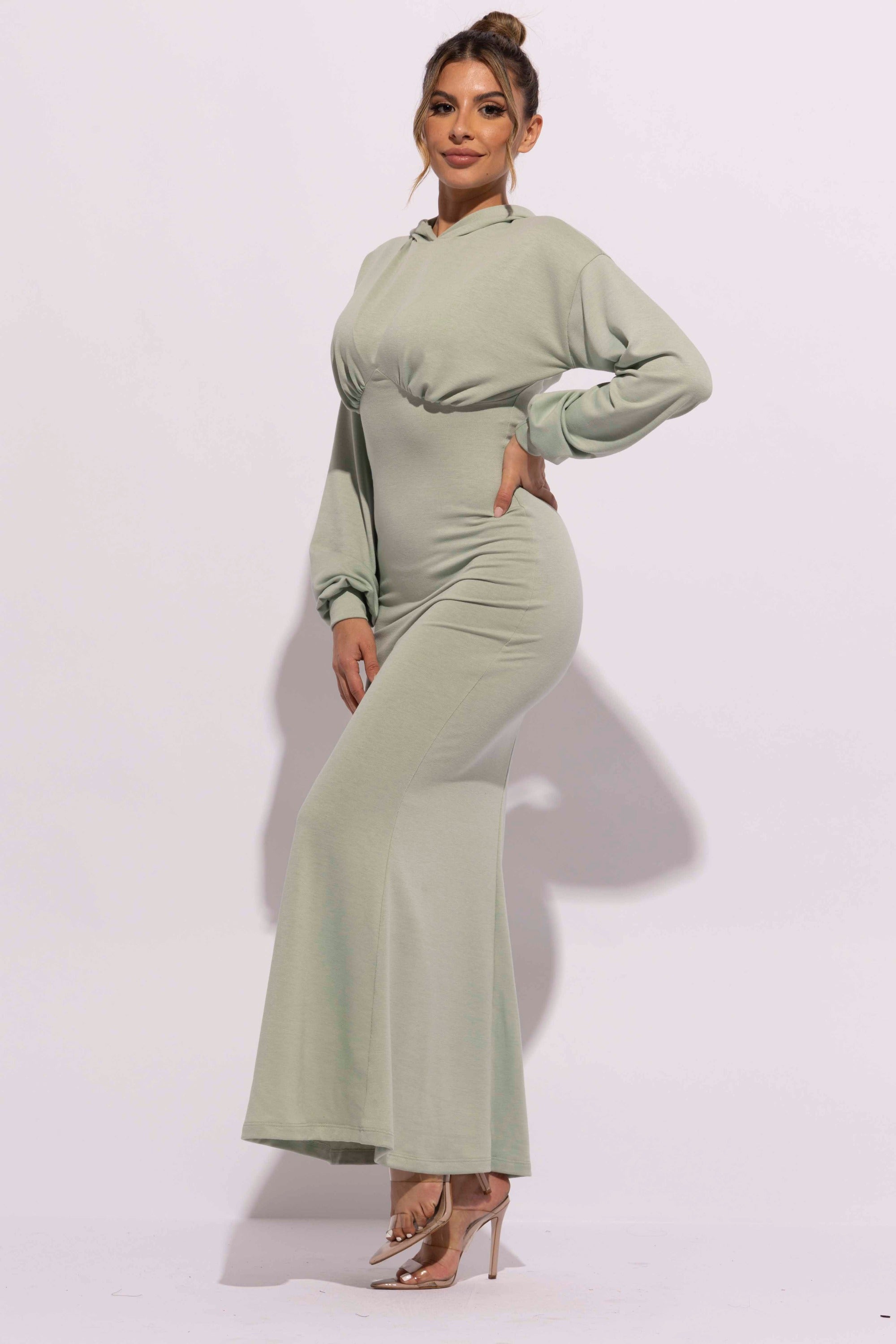 Chic comfort defines our Hoodie Maxi Dress. With a bodycon silhouette, relaxed sleeves featuring wristbands, and a hoodie, this...