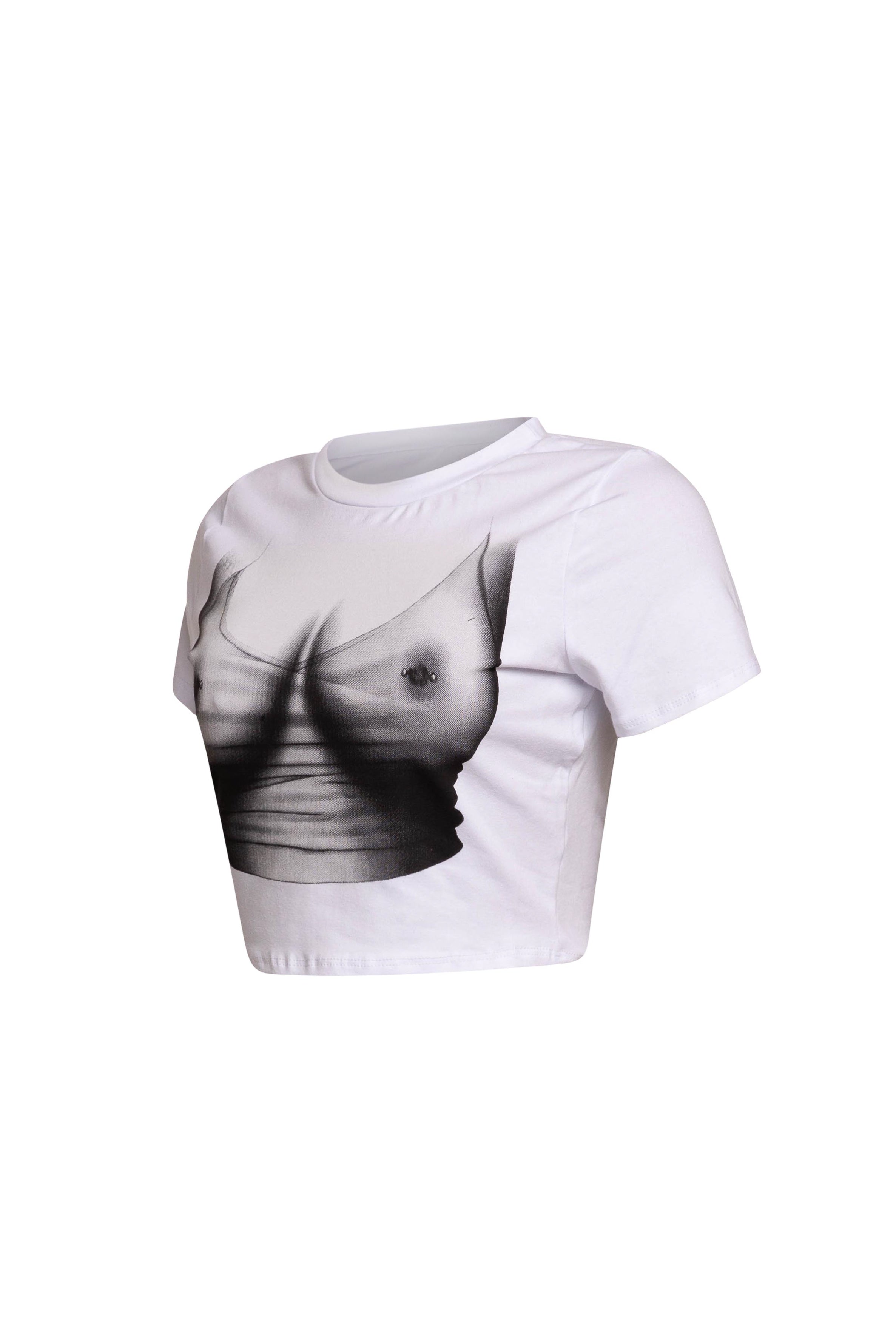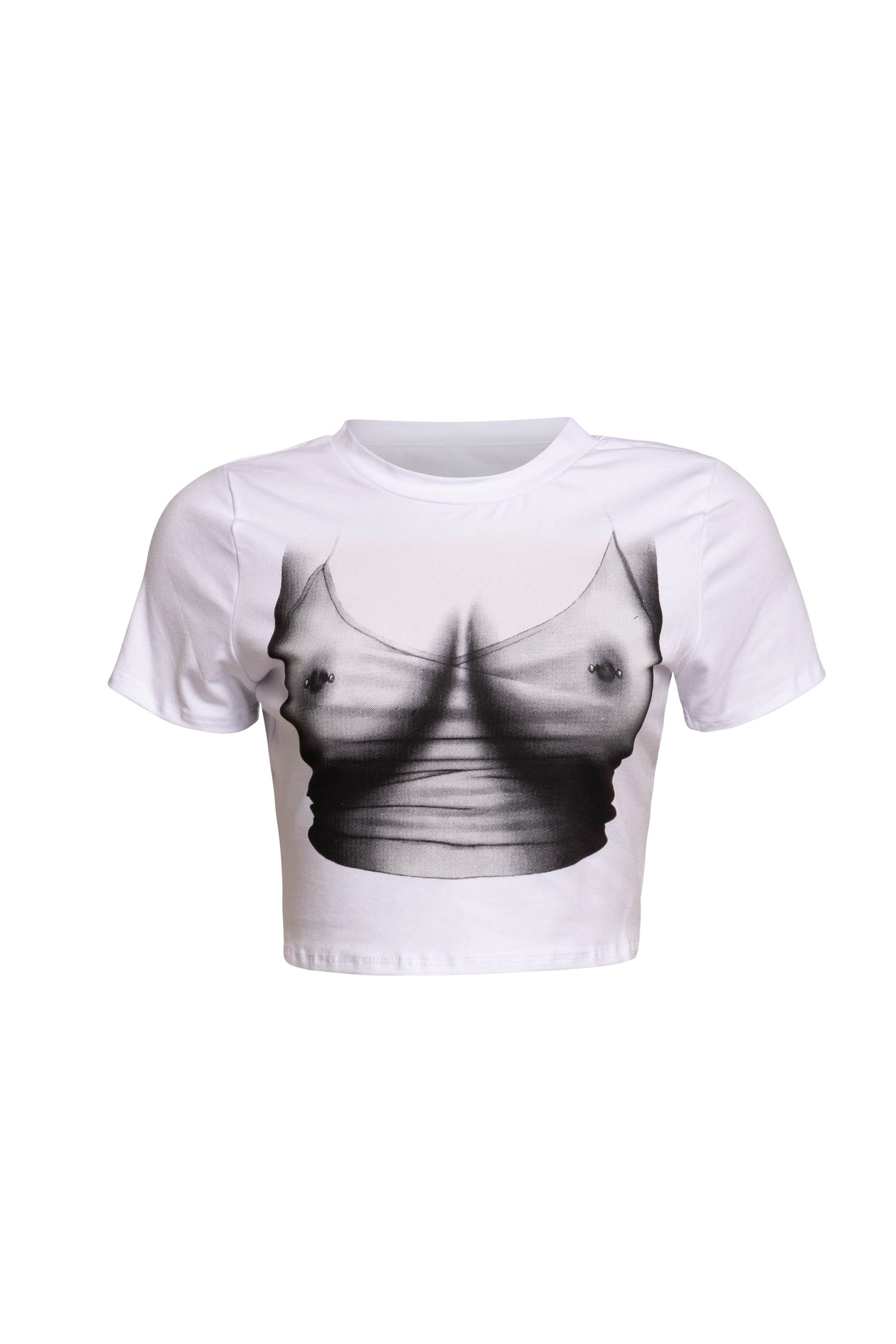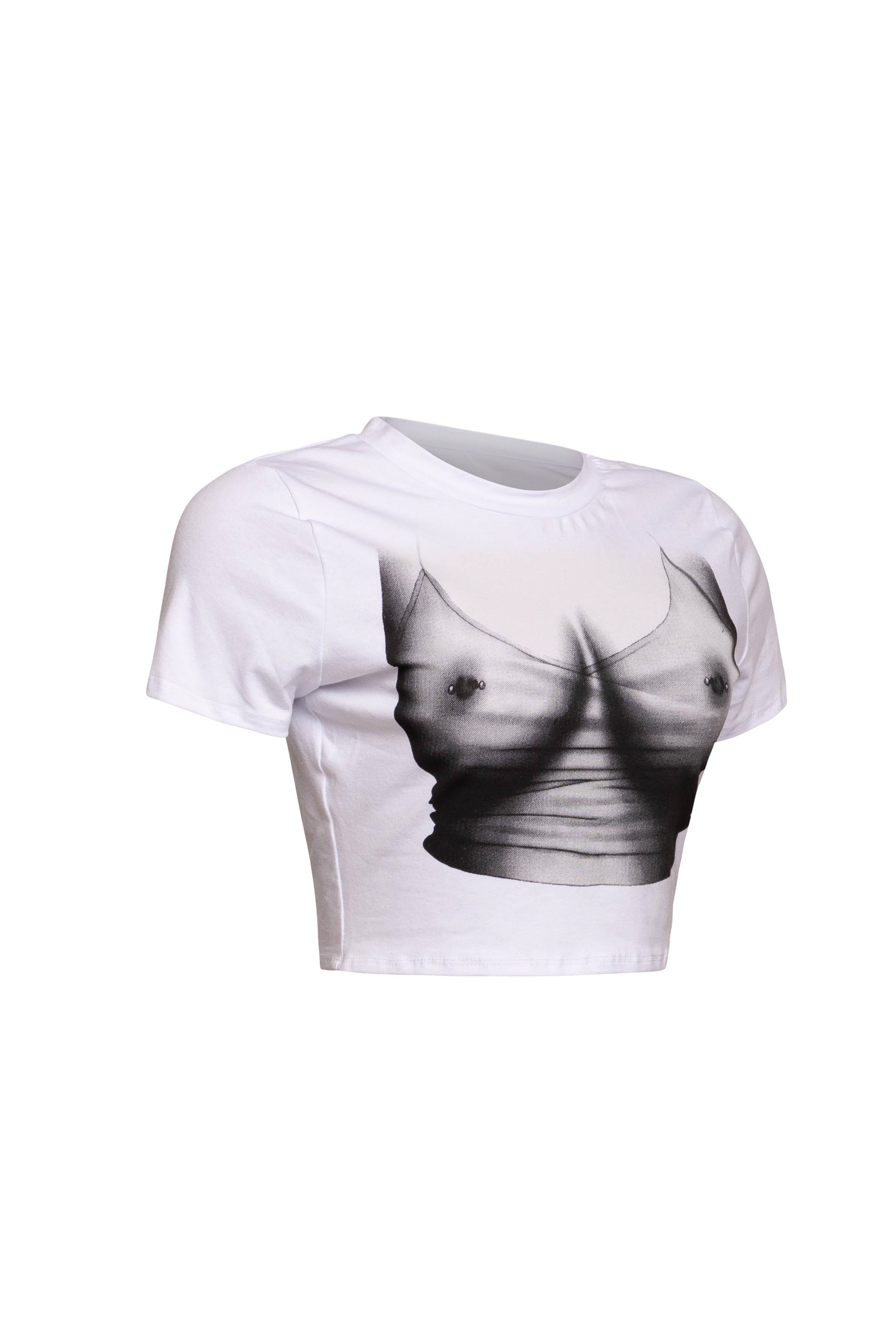 • Crewneck• Short sleeves• Length: 16"• Unique 3D-effect graphic design• Cropped fit• Available Colors: White,• Available Sizes: S, M, L•...