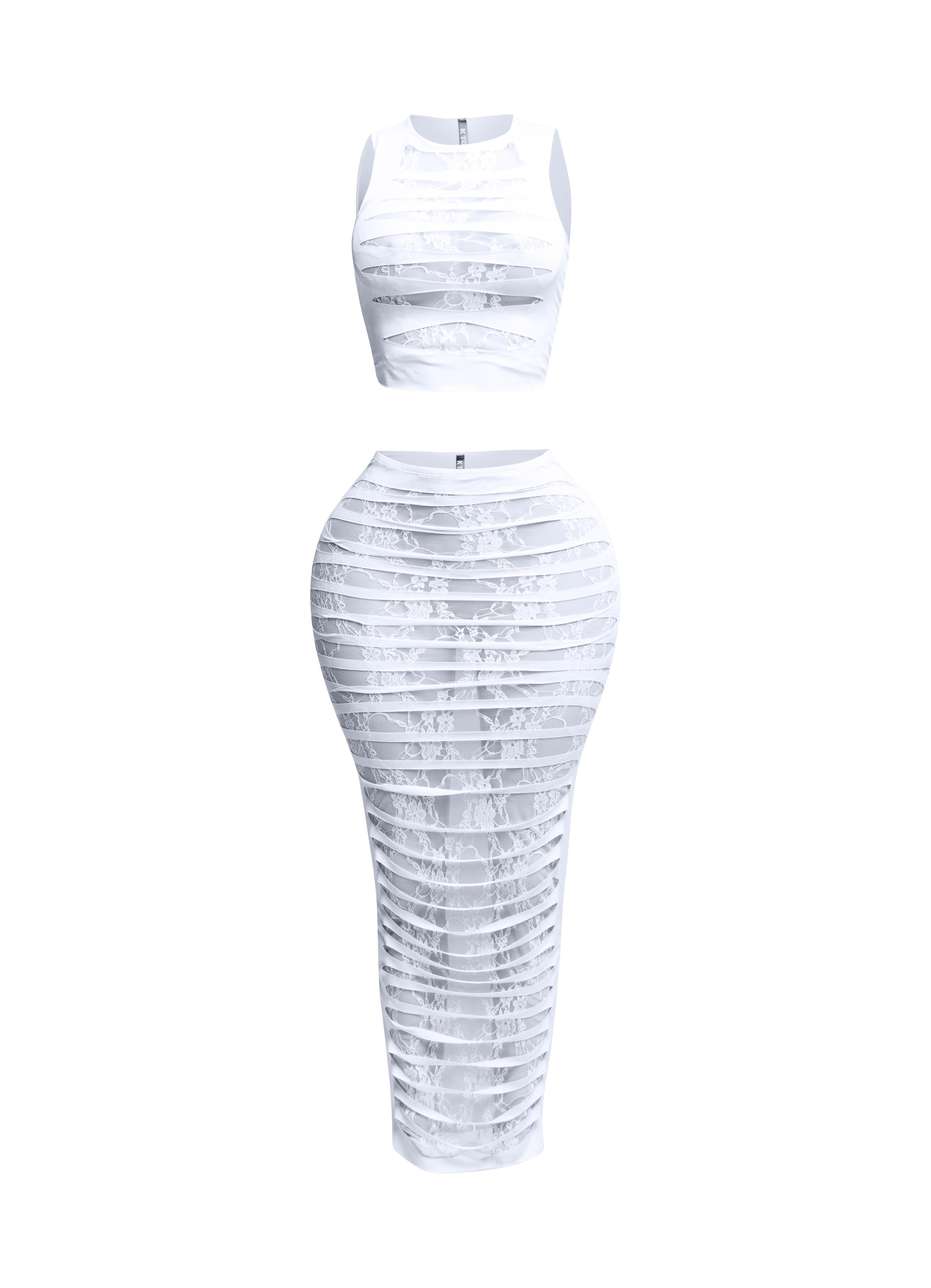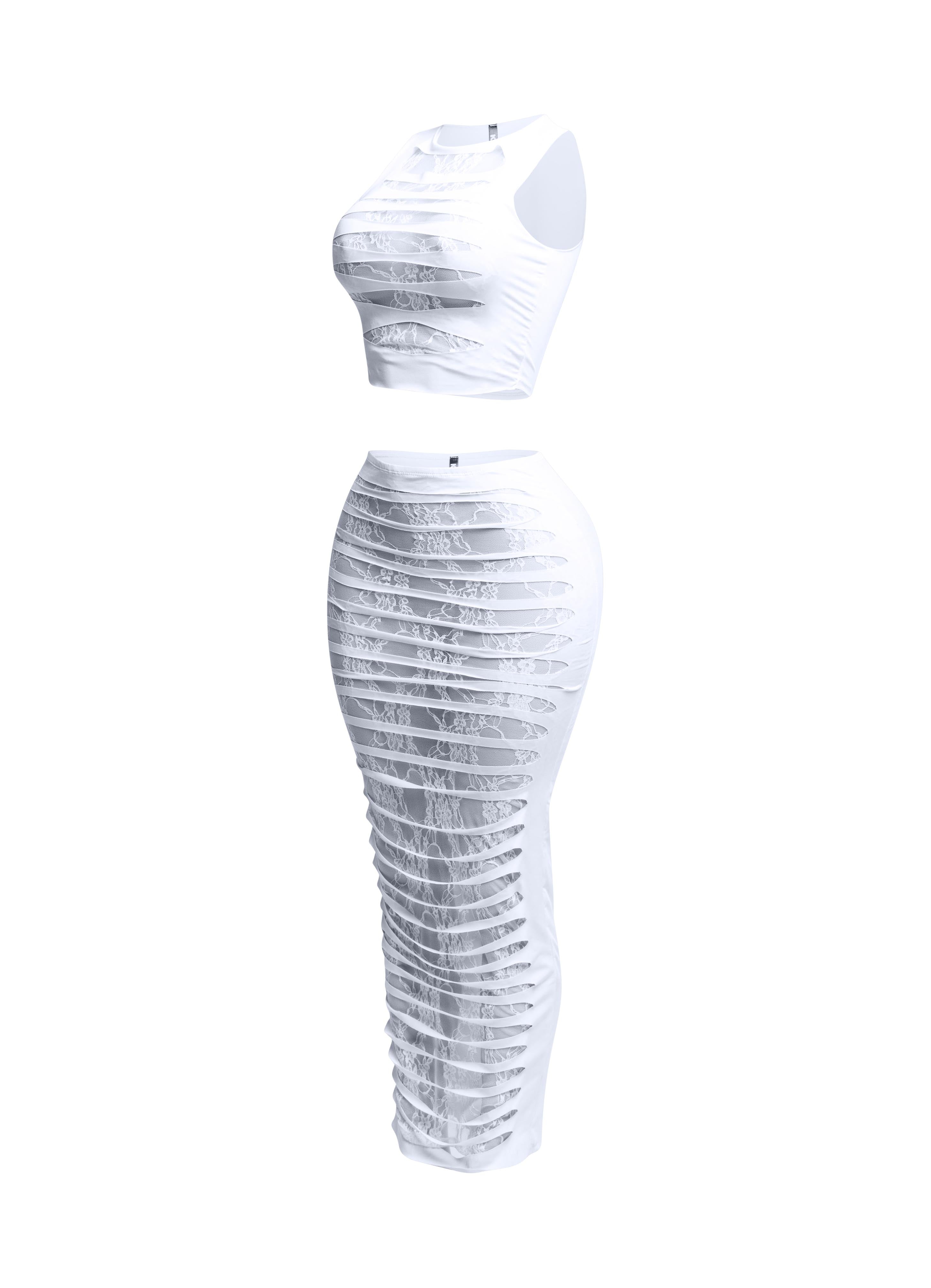 Lace layered cut out skirt set