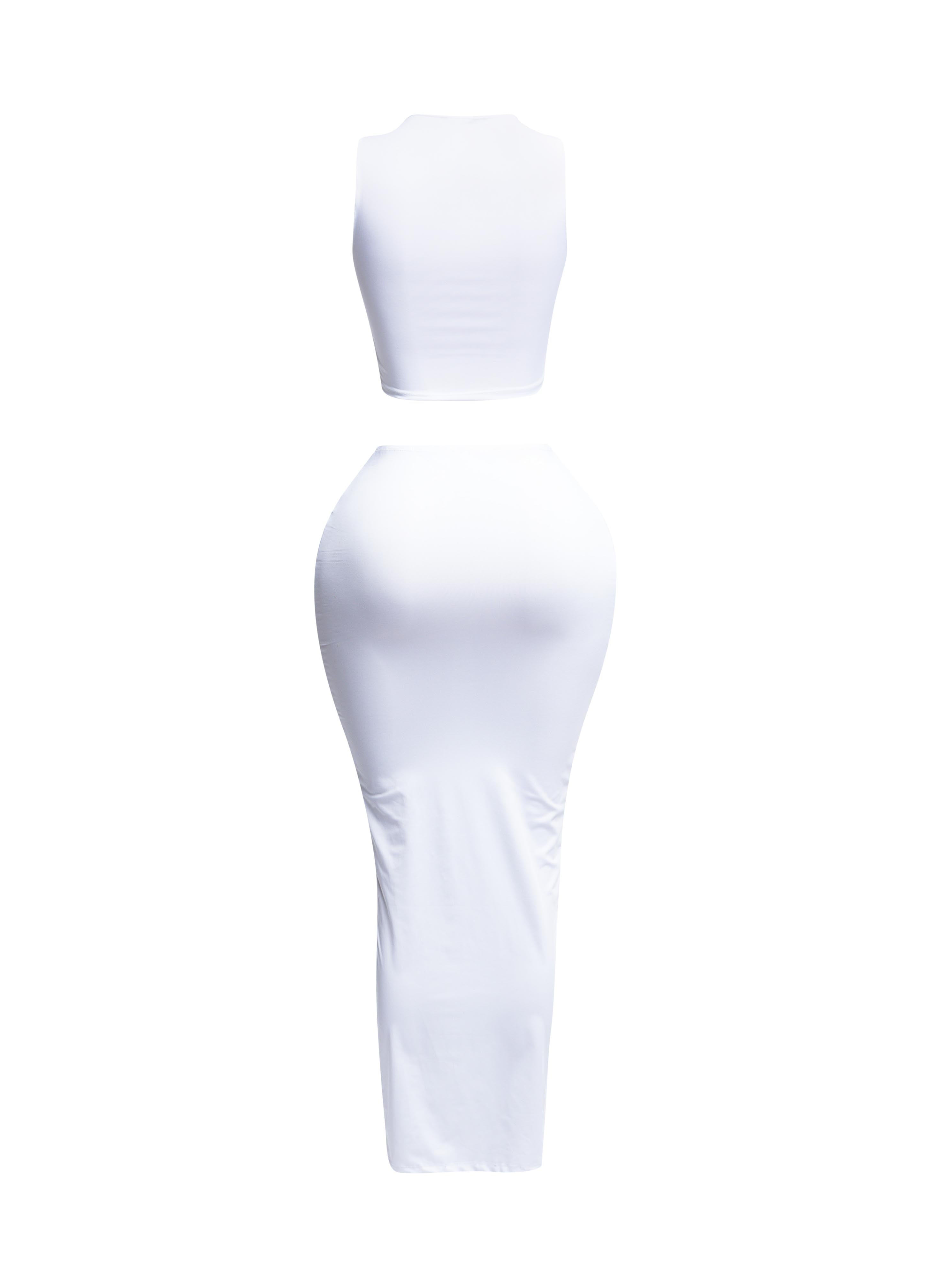 Make a bold statement with our lace-layered cut-out skirt set. This chic ensemble combines feminine lace details with modern cut-outs...