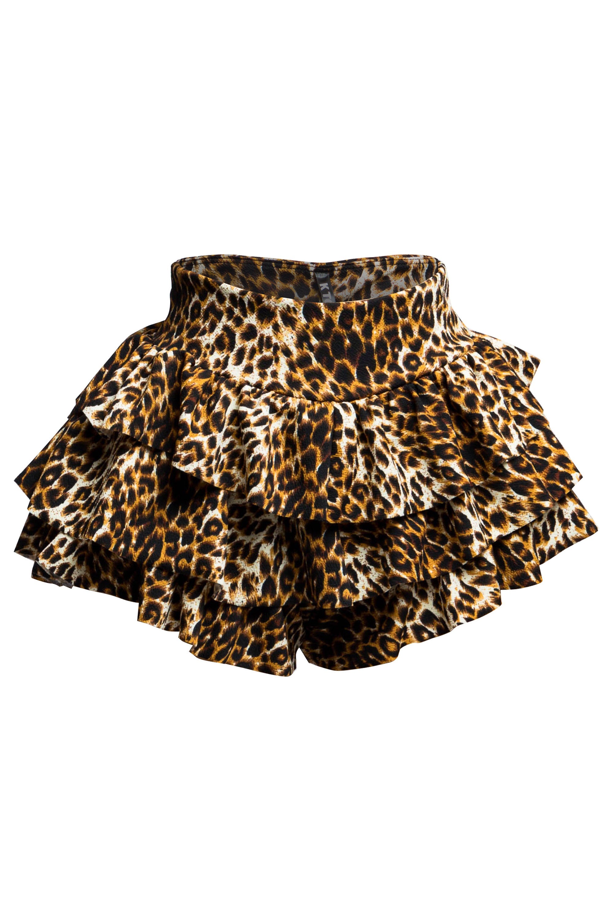 • Elastic waistband • Pull On • Stretch • Leopard print fabric • Banded waist • Ruffled design • Self:...