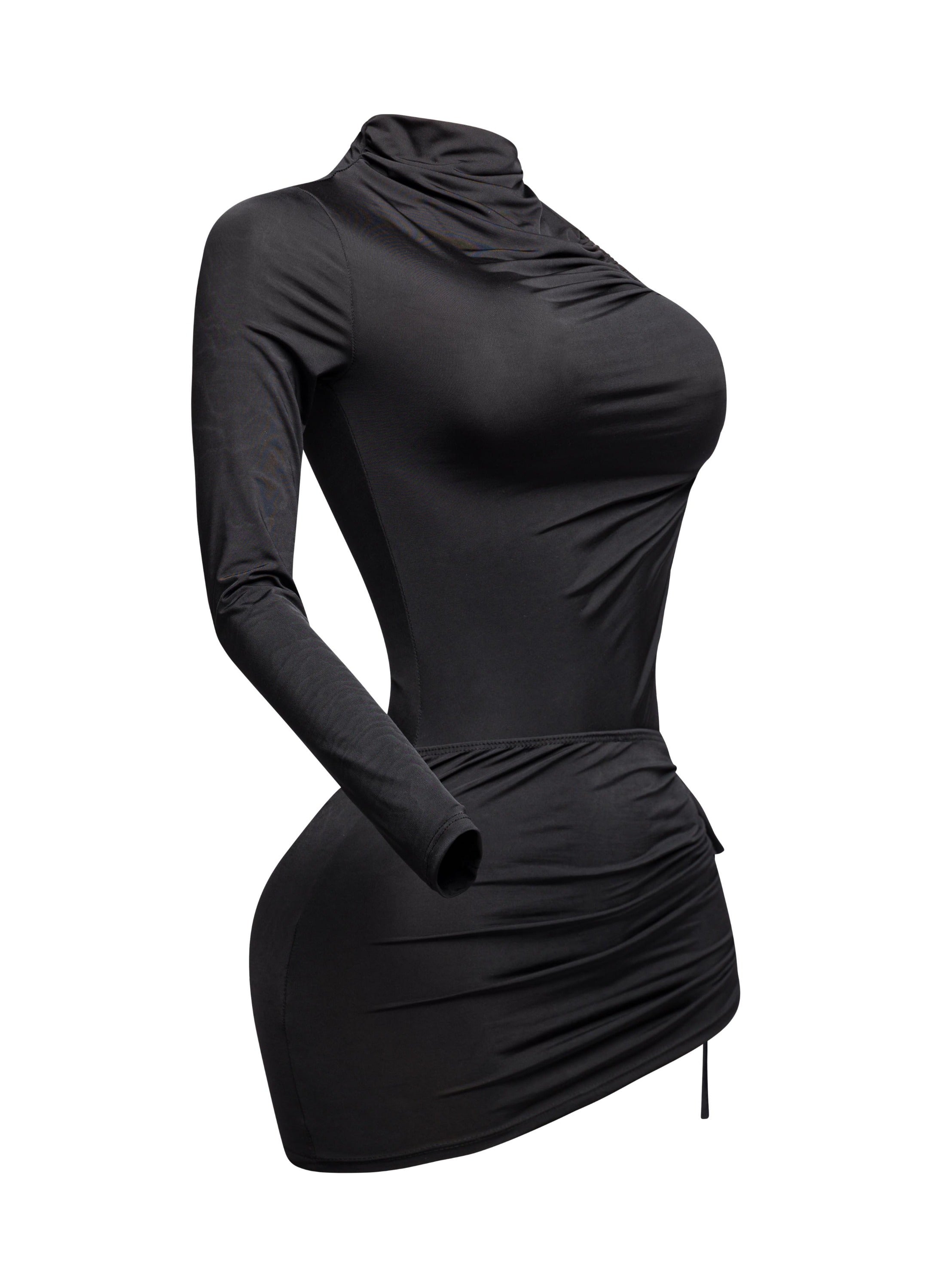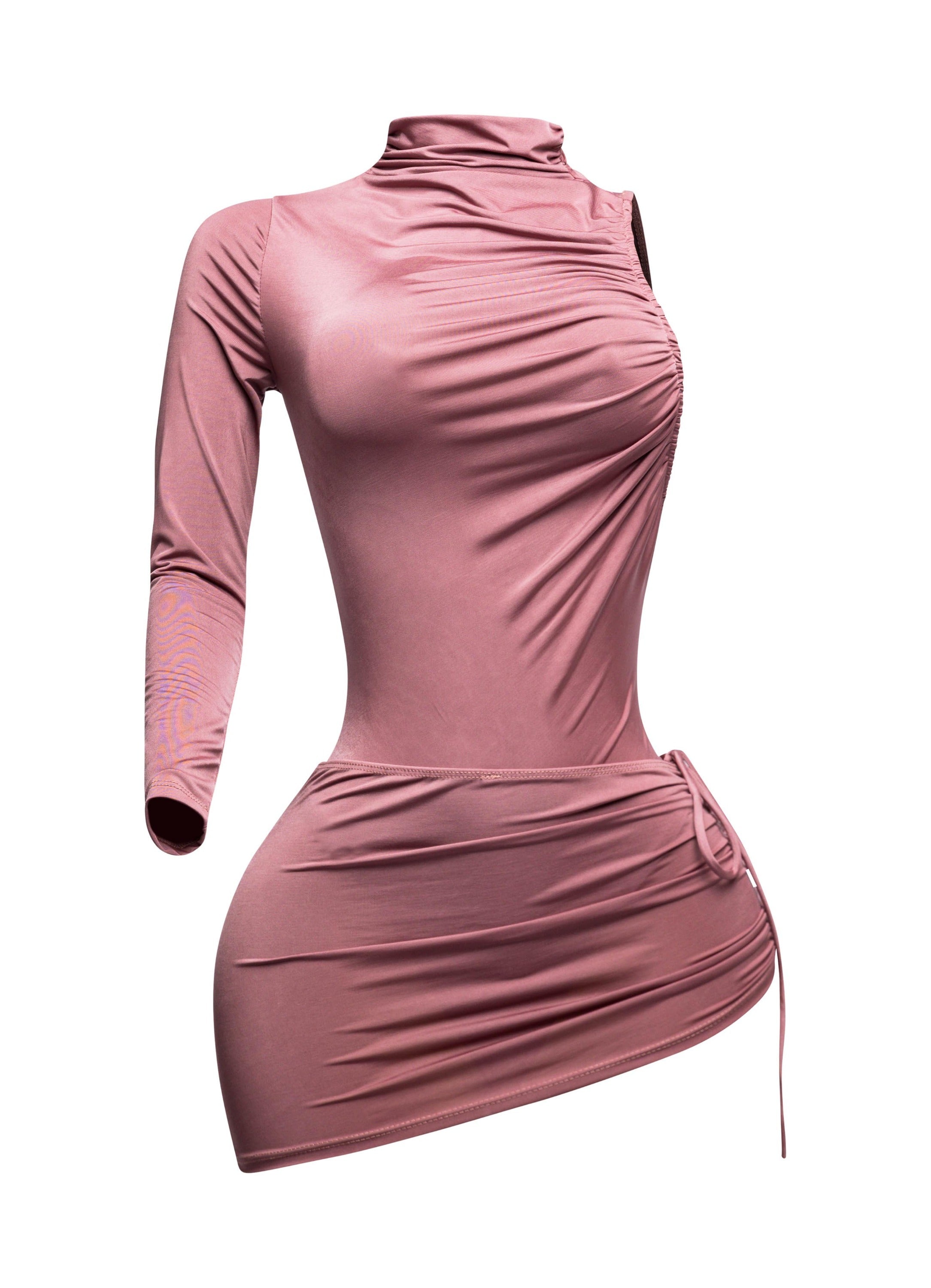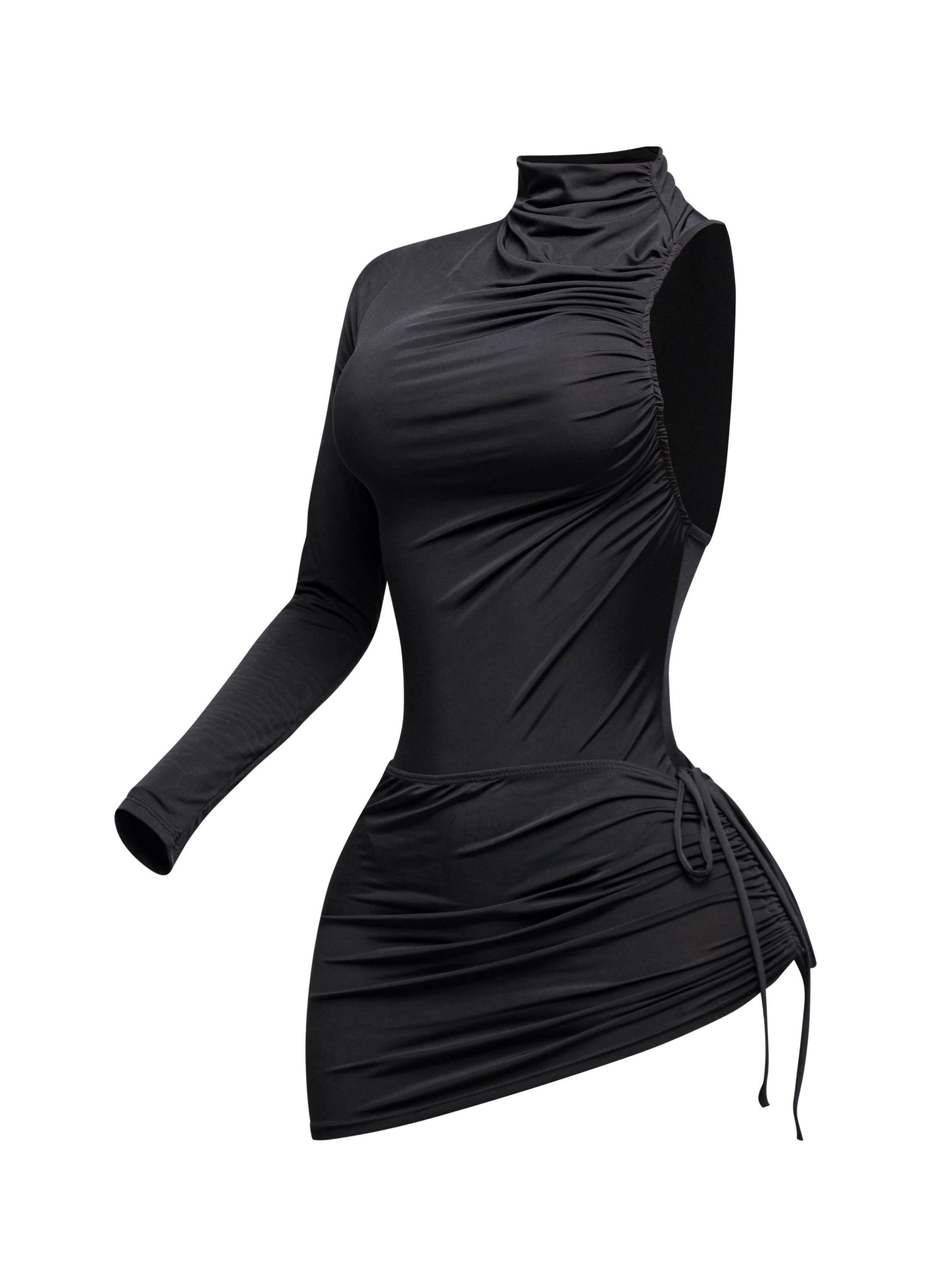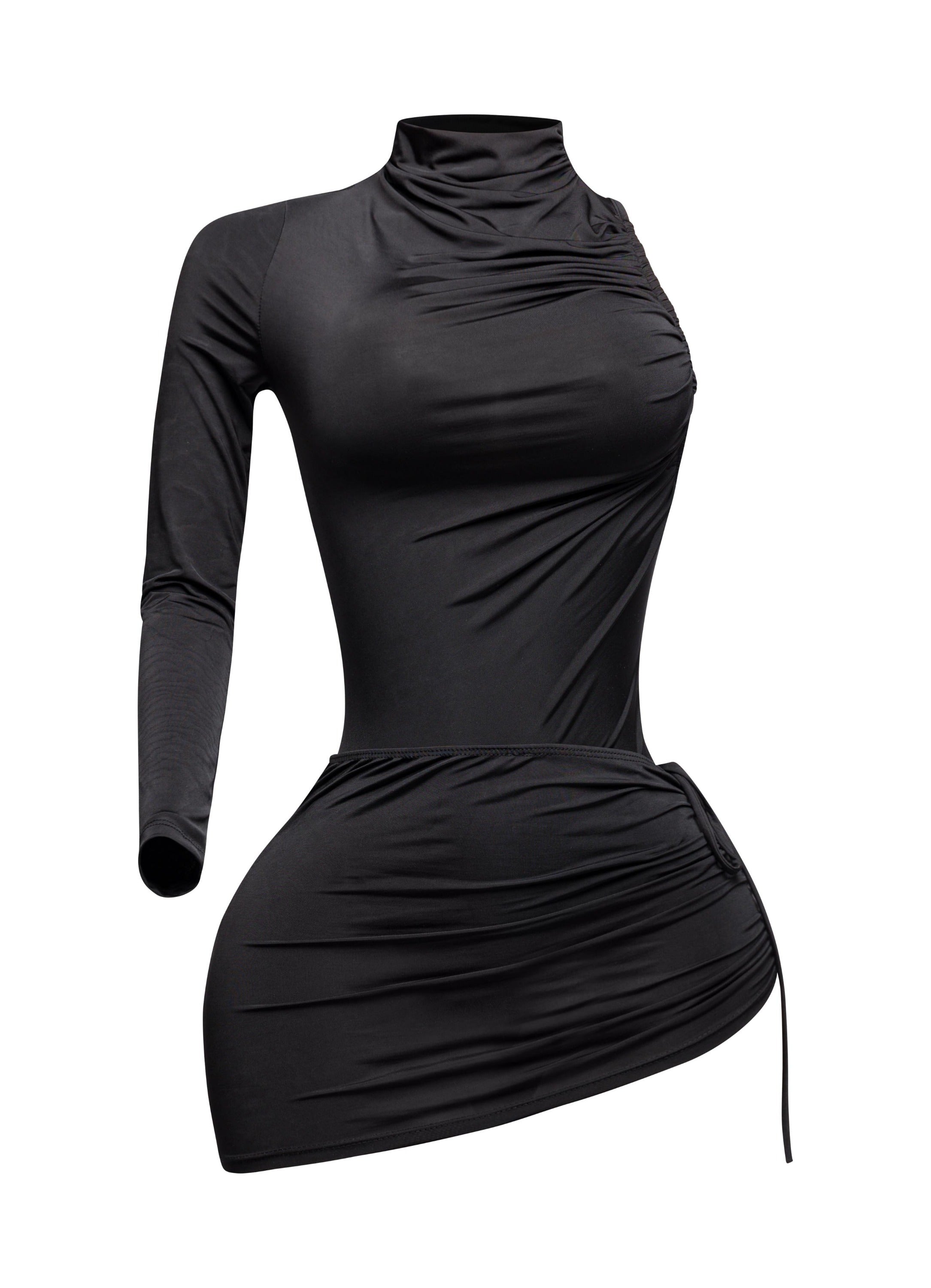 • Bodysuit set • Mini skirt set • Mock neck one long sleeve • Asymmetrical hem • Stretch • 95%Polyester...