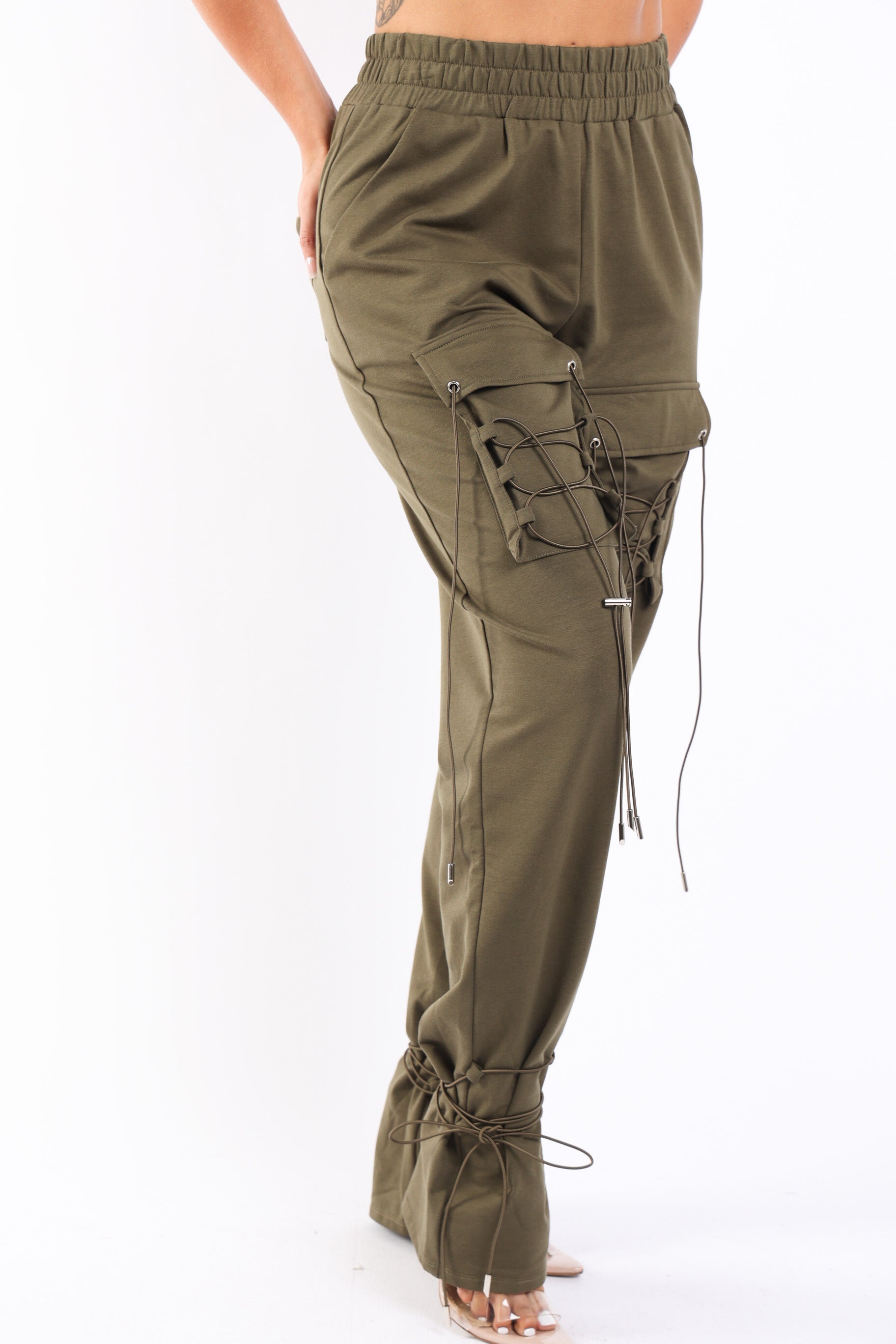 Parachute corded lace up jogger pants