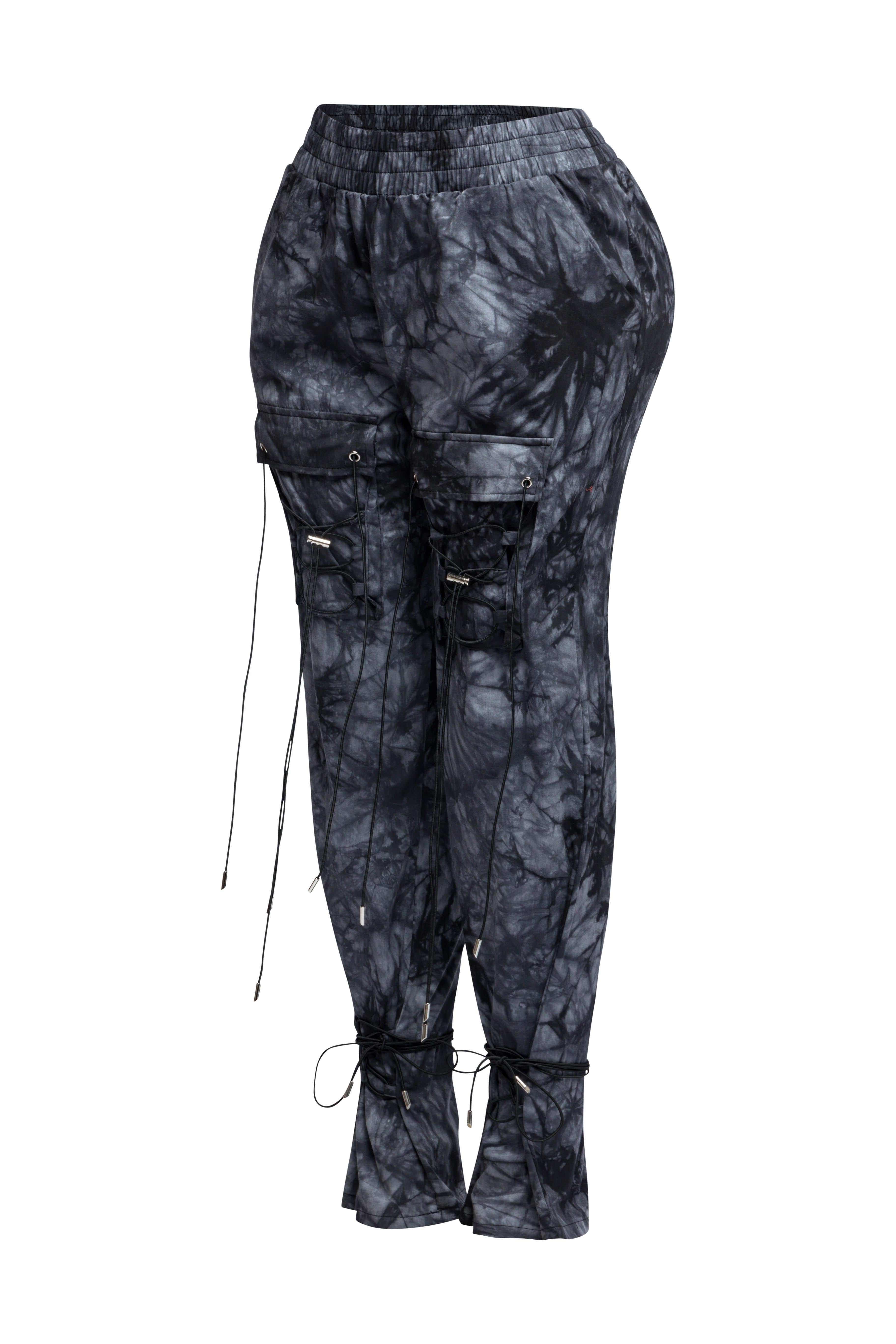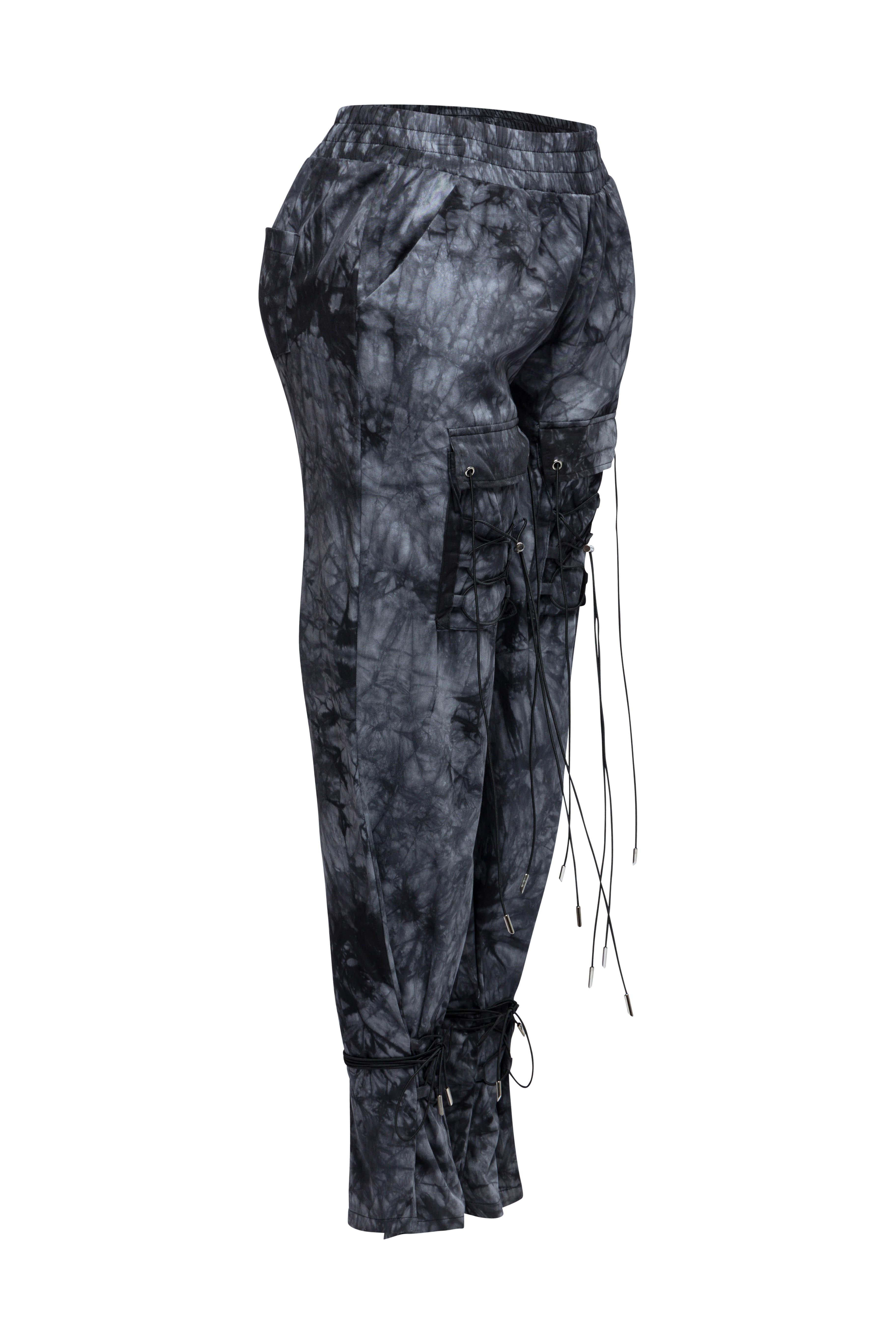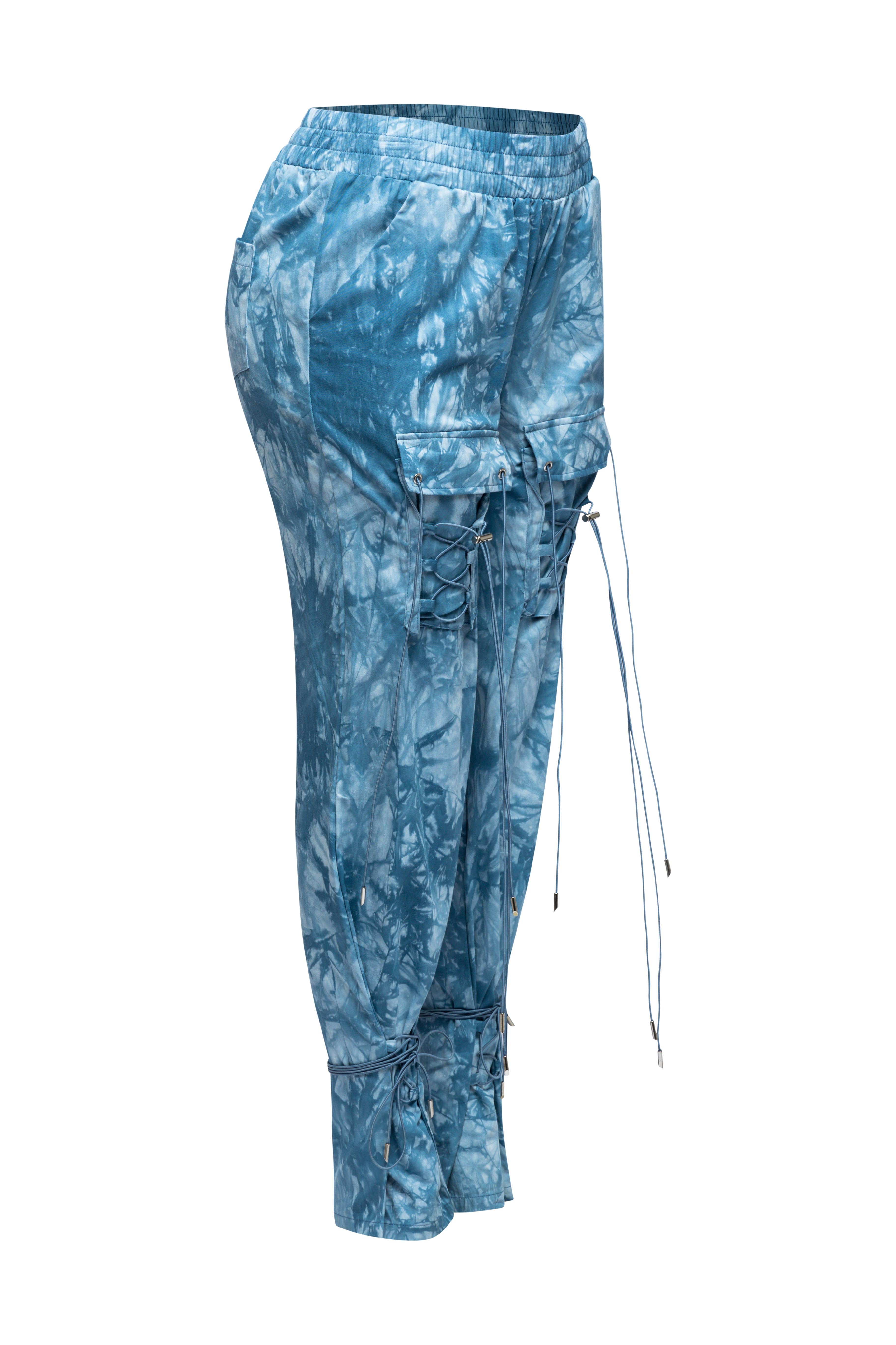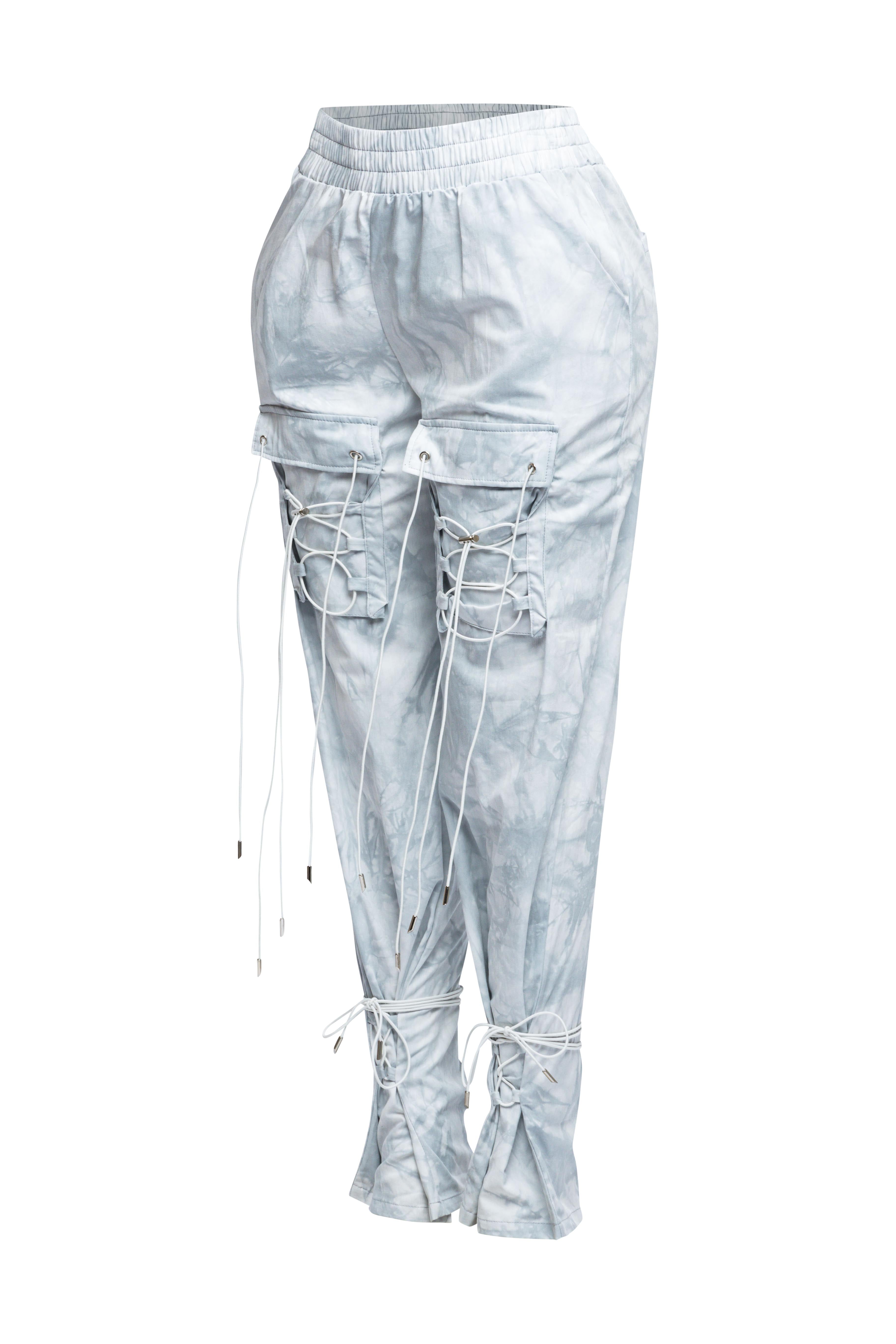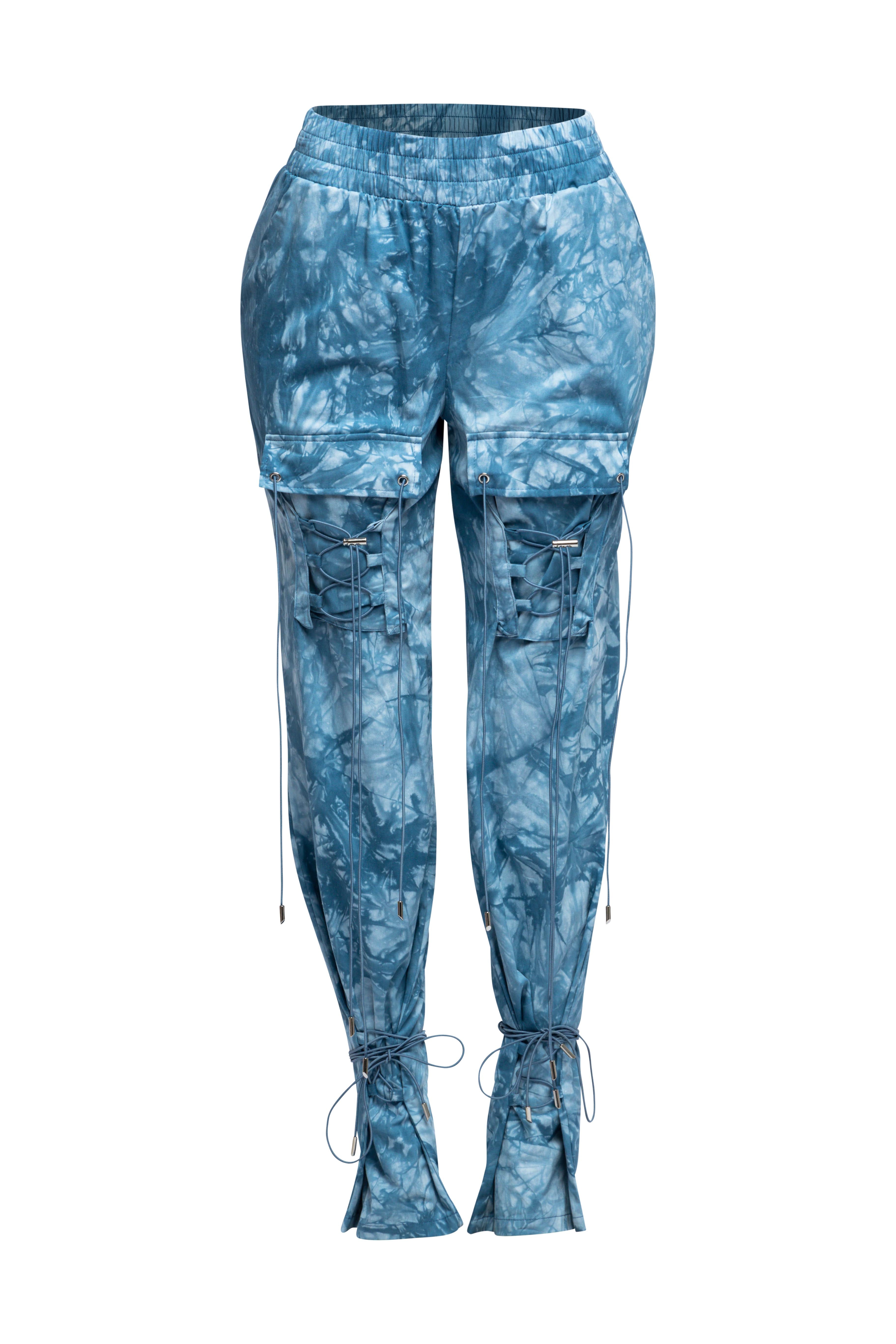 • Tie dye print• Elastic Waistband• Non stretch• Front cargo pockets with lace up detail• Parachute pants• Tie ankle detail•...
