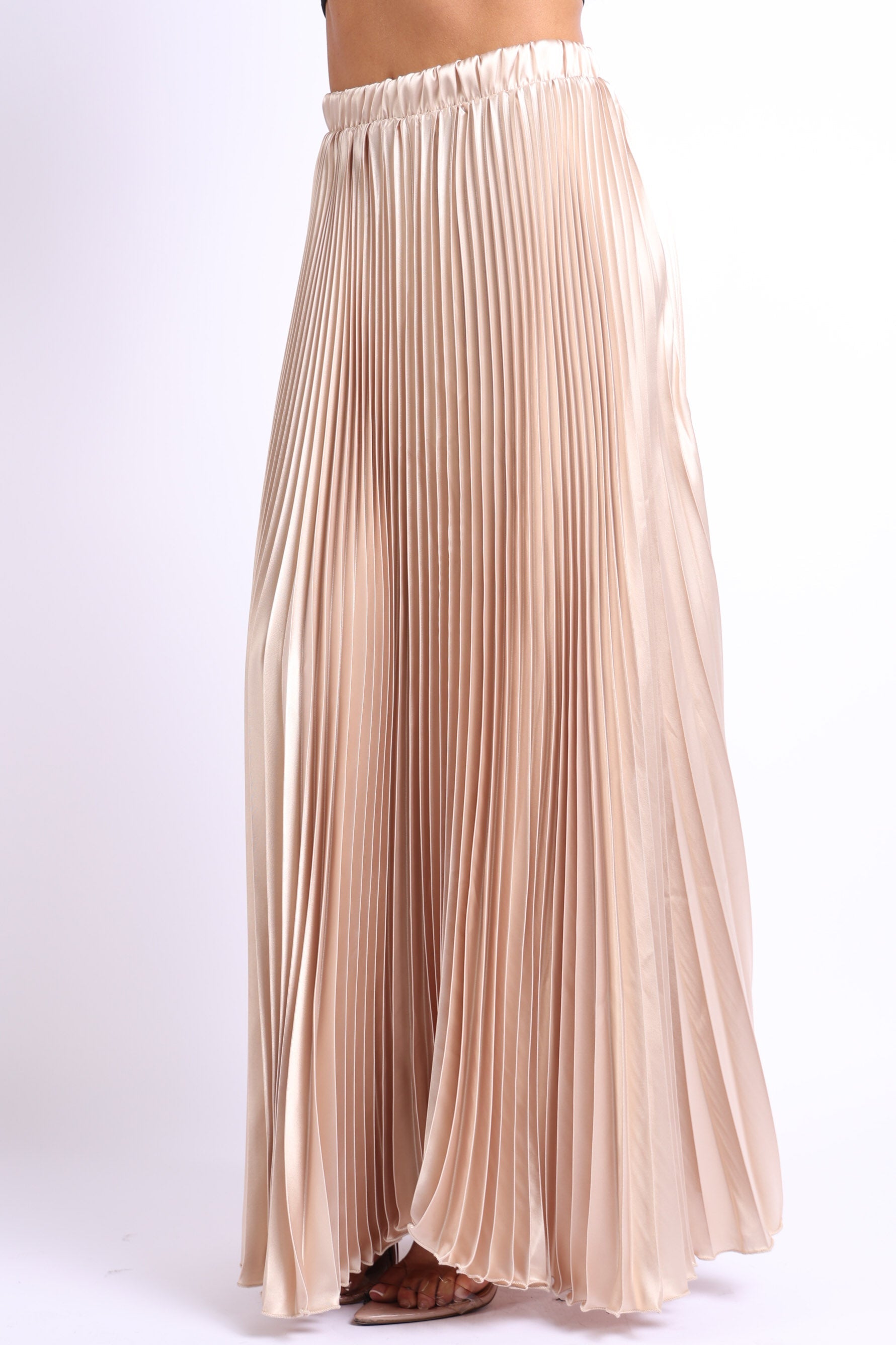 Elevate your style with our Pleated Satin Maxi Skirt. Luxurious satin meets meticulous pleats for a timeless, sophisticated look. Perfect...