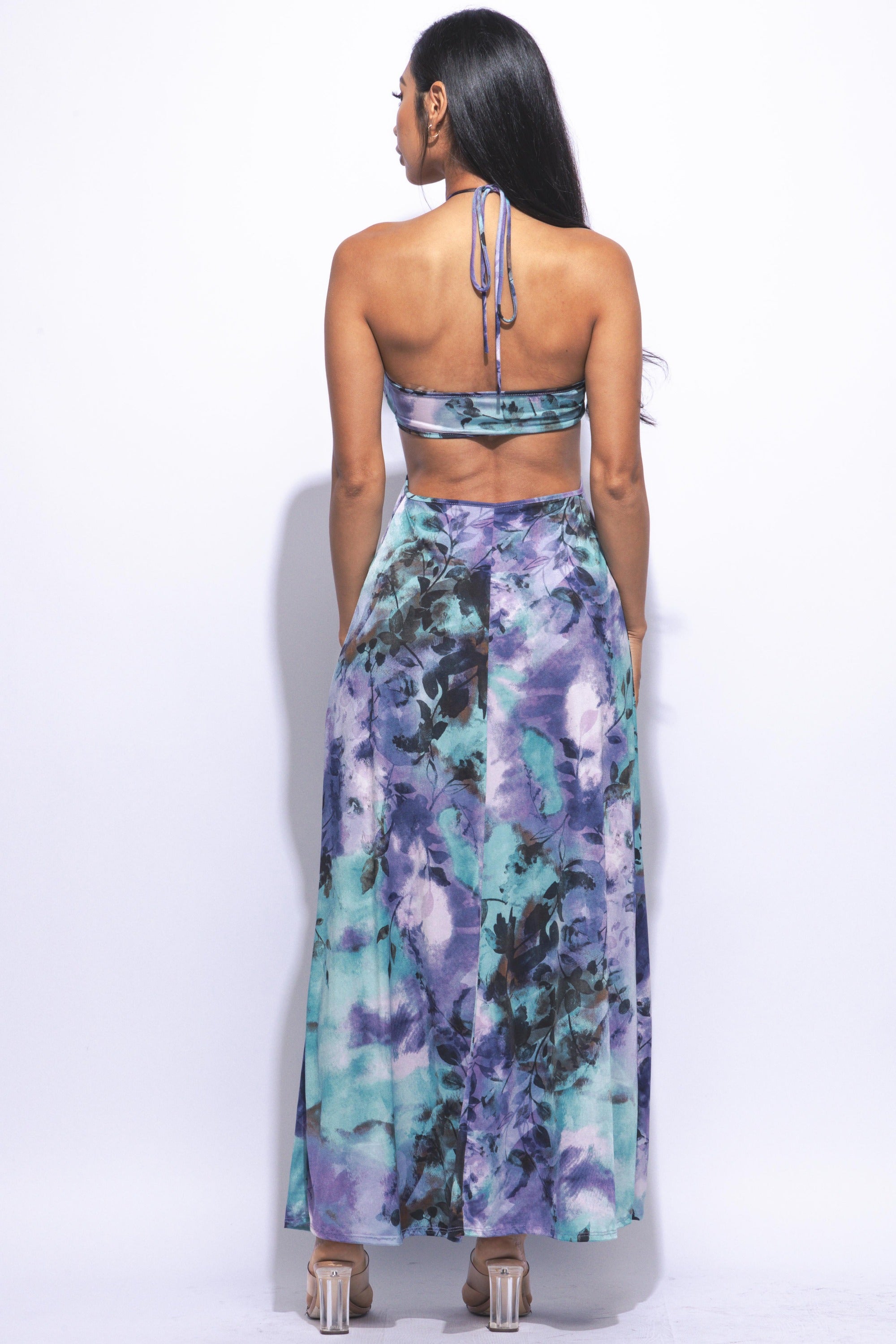 Printed maxi Dress with high slit