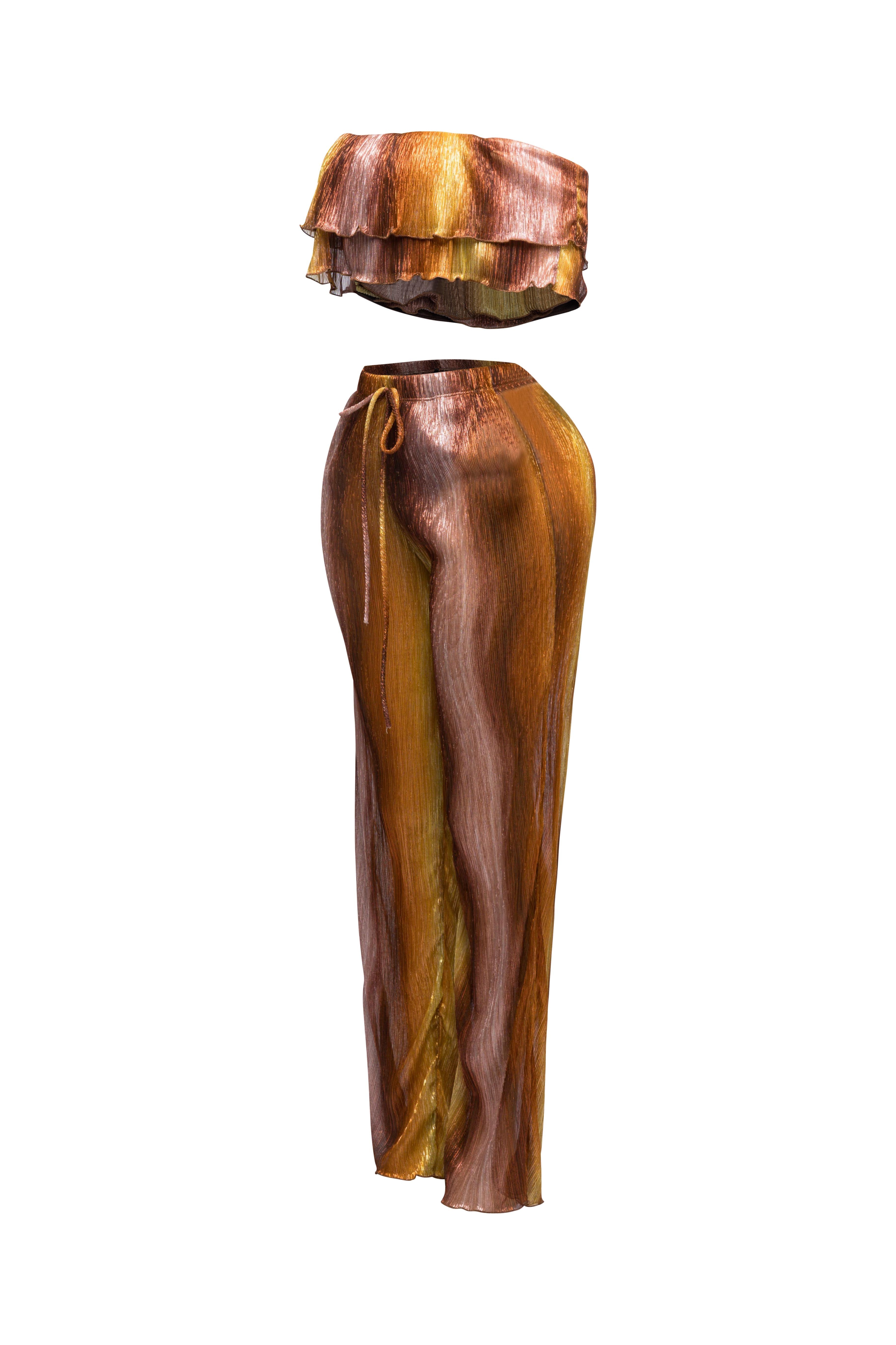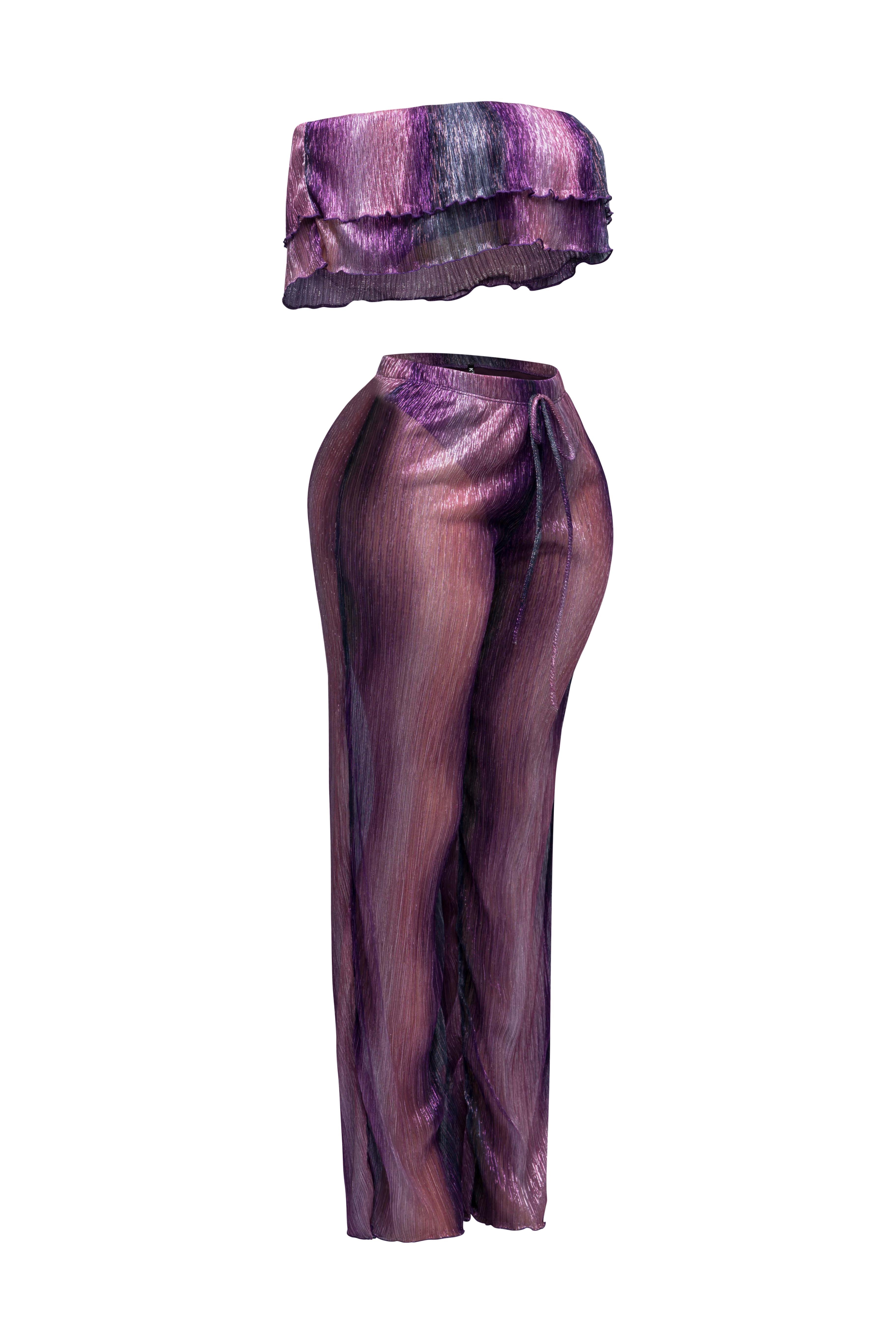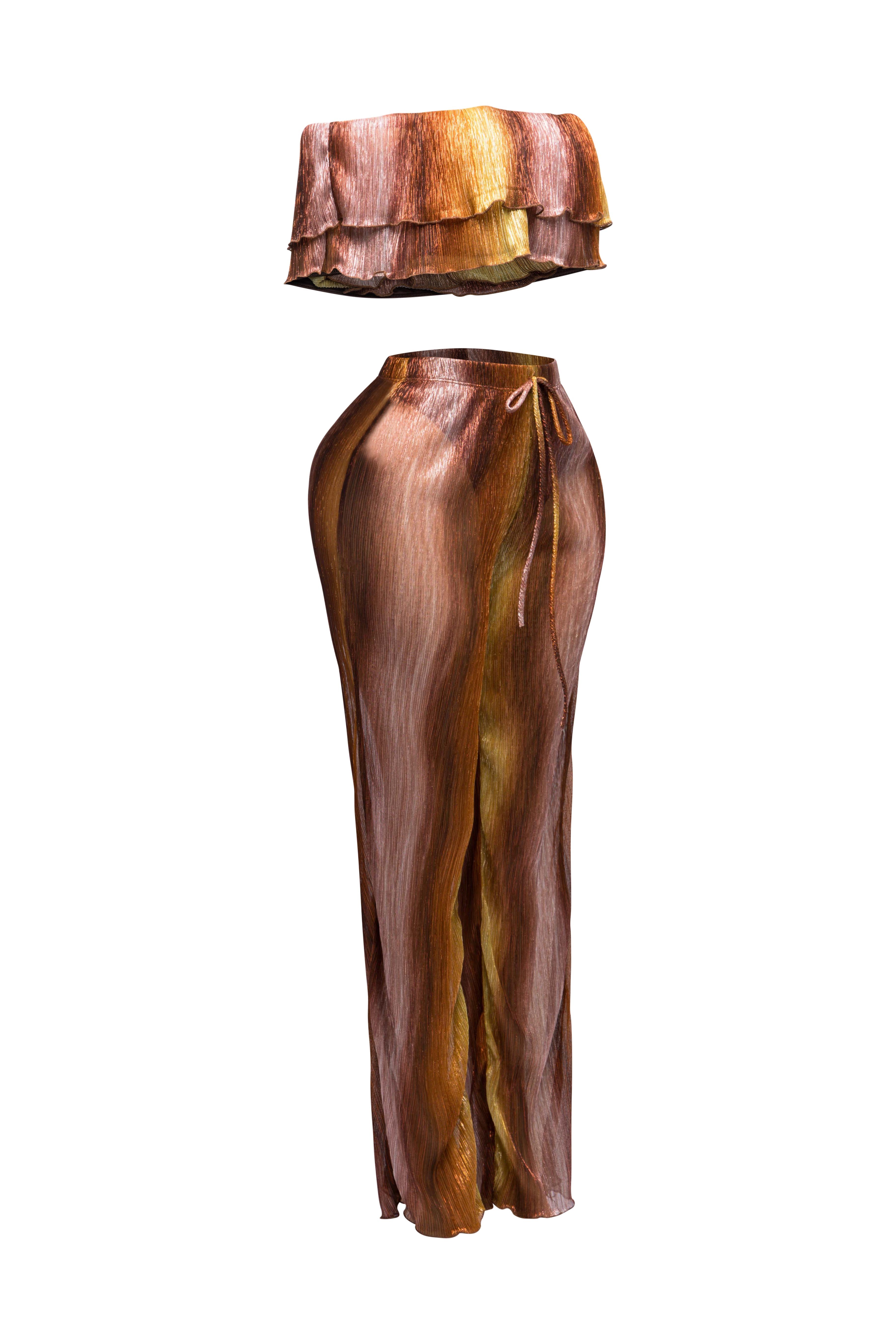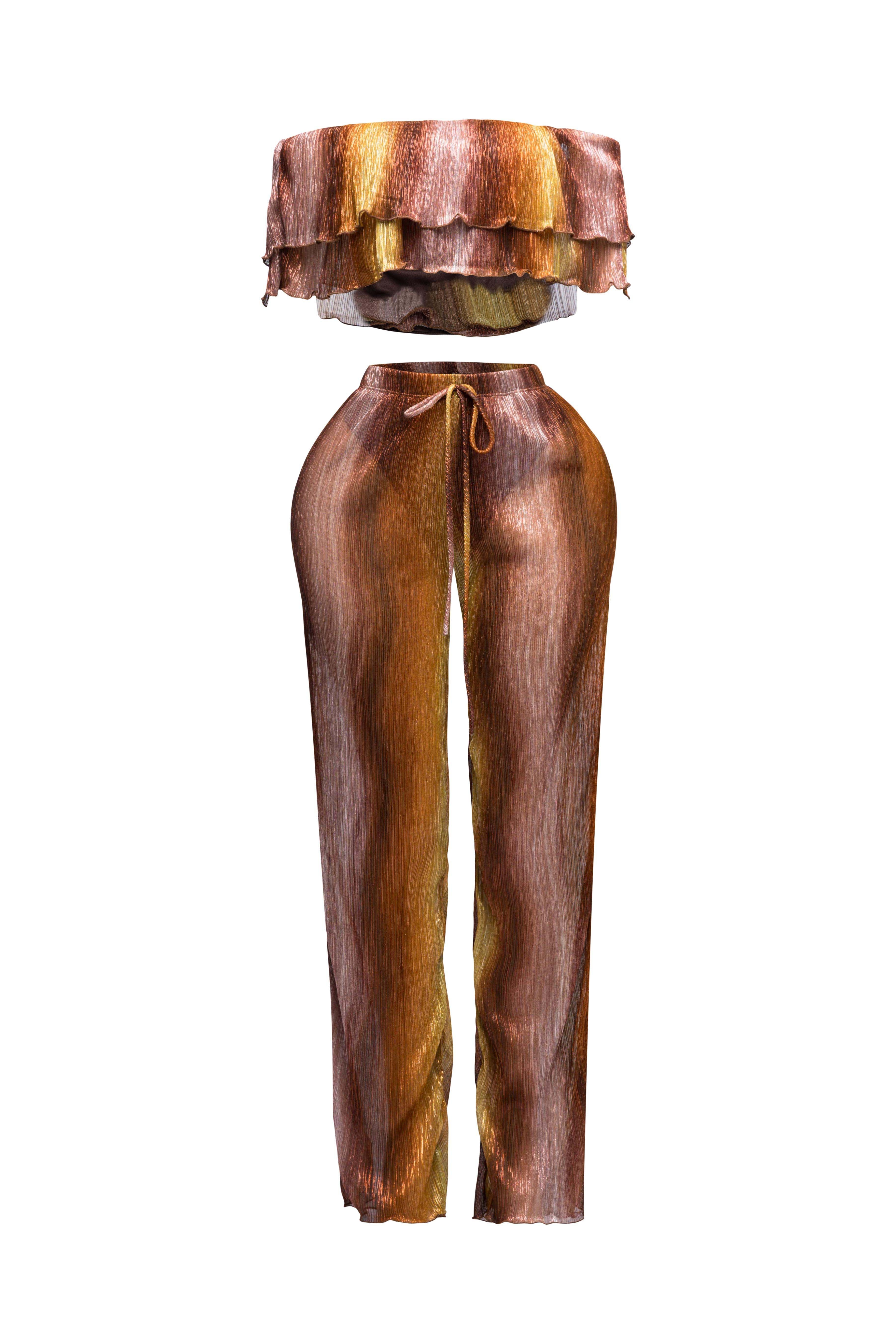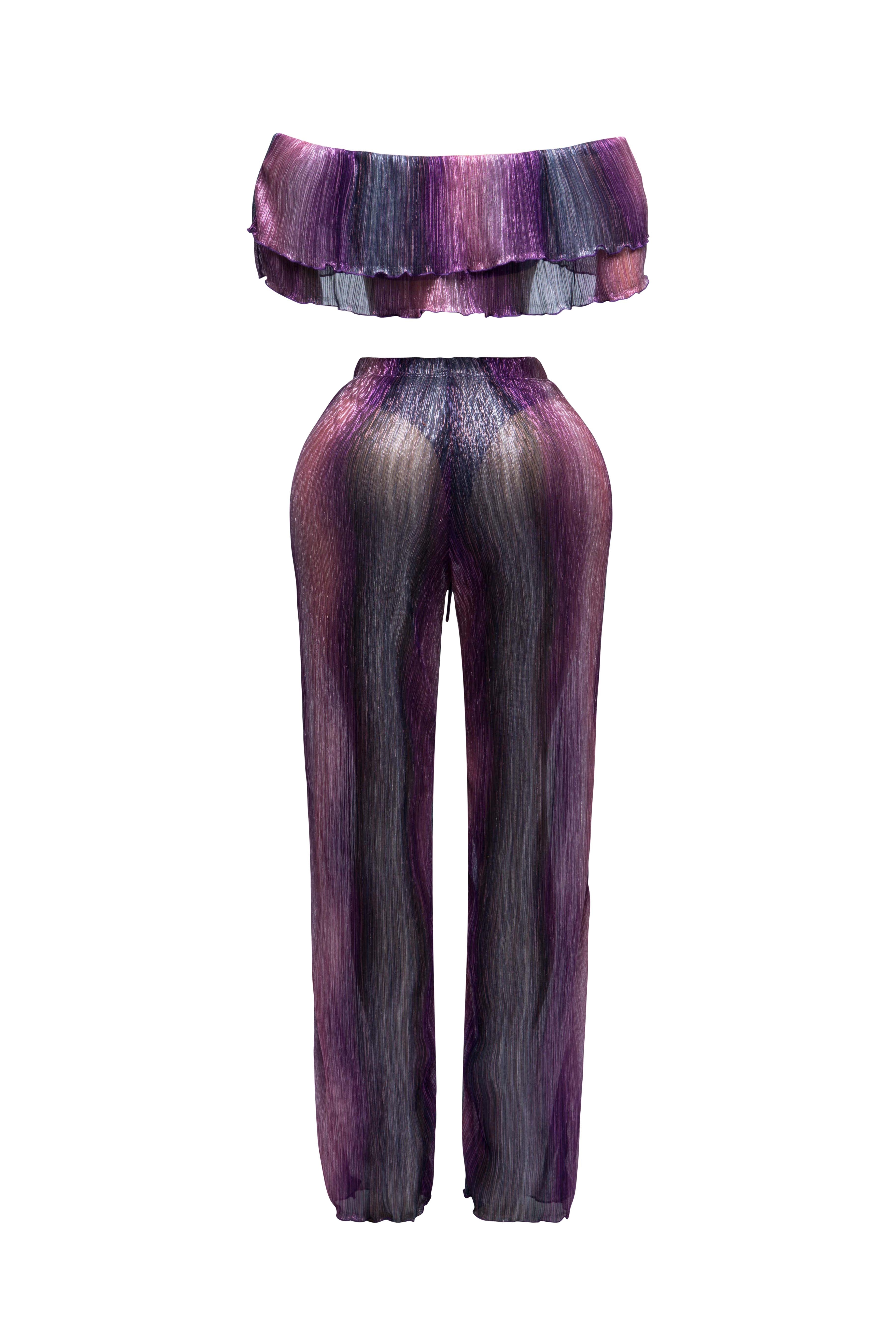 Turn heads with our Ruffle Off-Shoulder Set. The playful ruffle detailing adds a touch of romance to the off-shoulder top,...