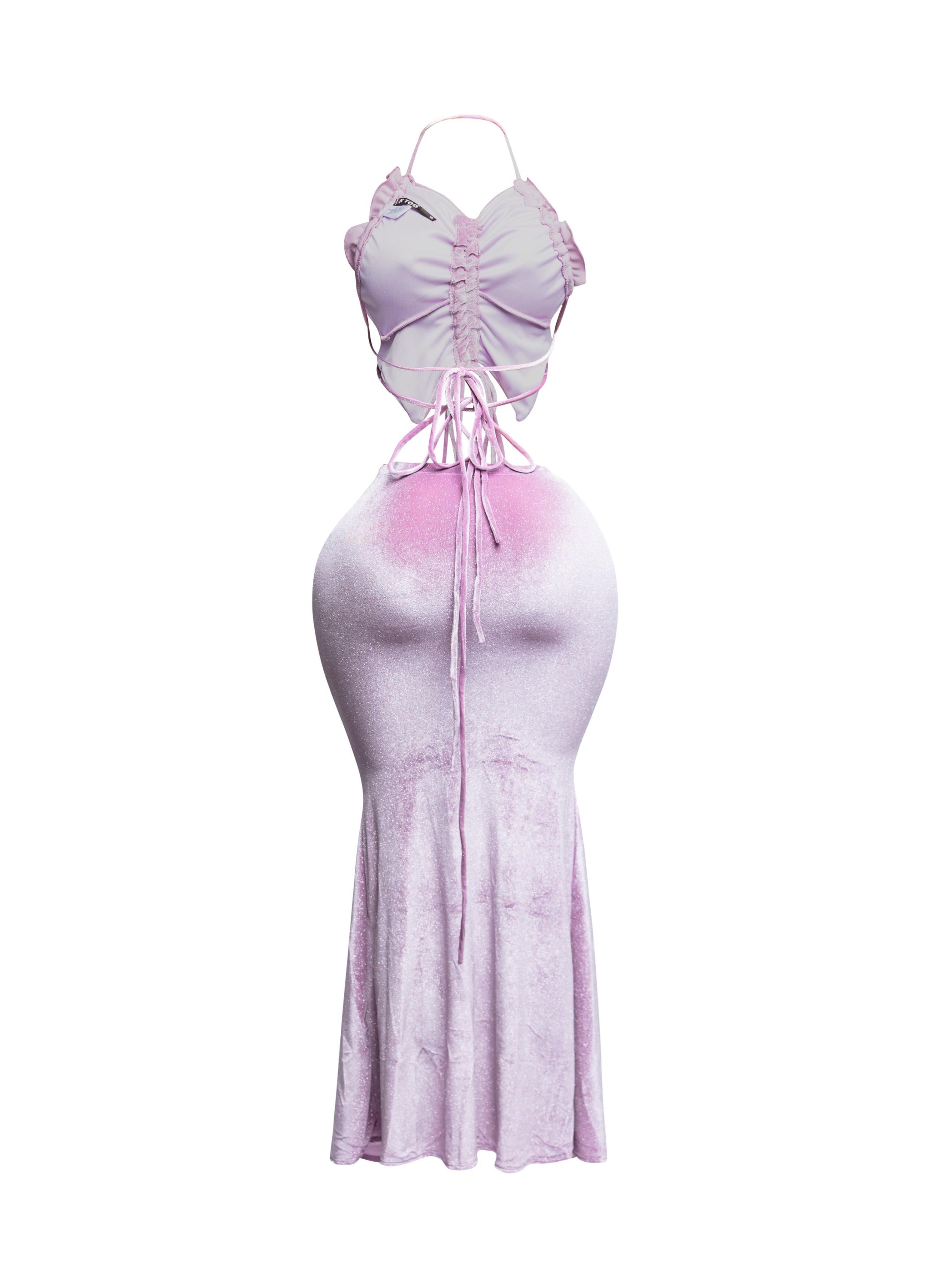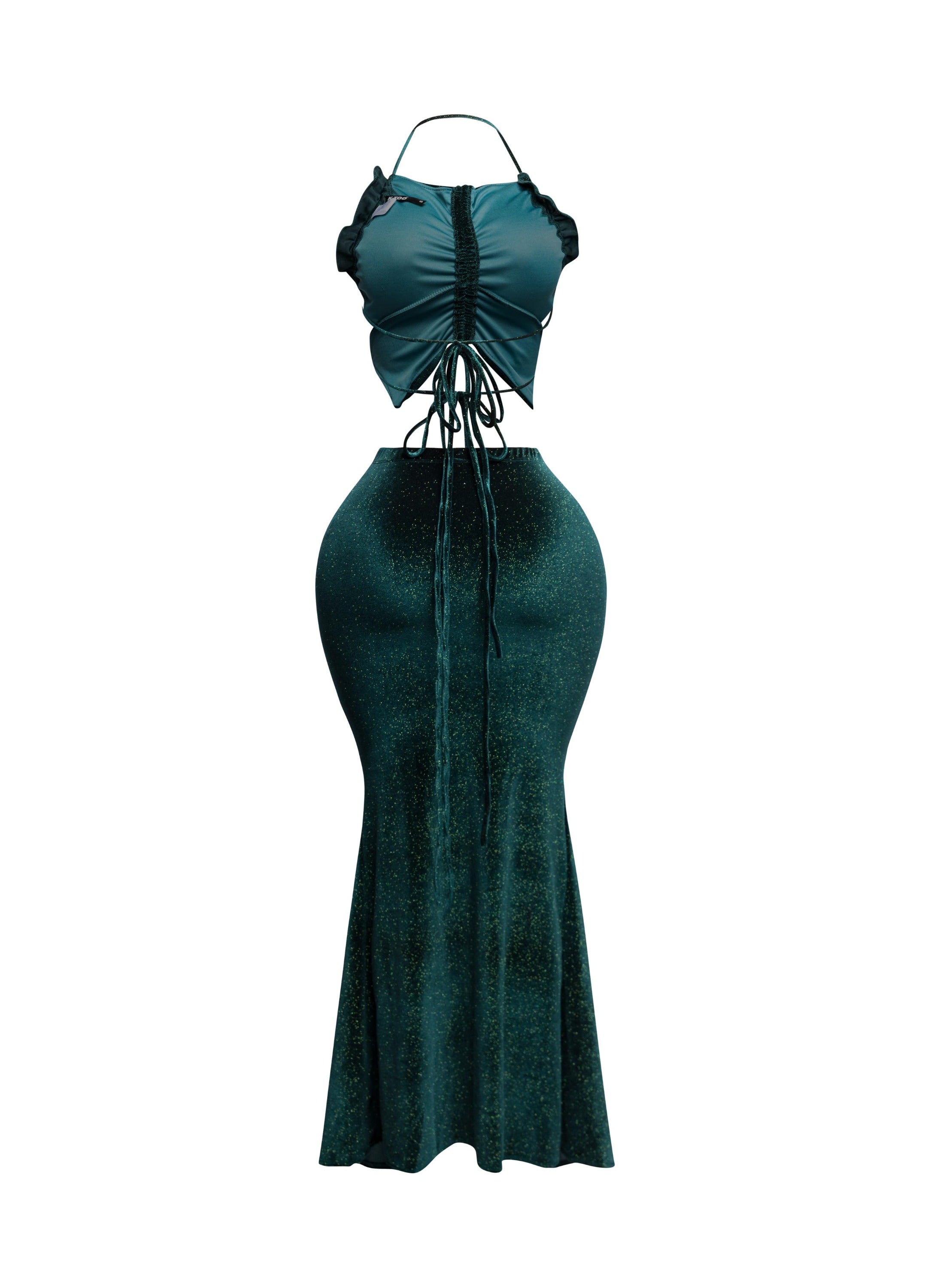 • Rulex velvet • String halter top • String tied front • Slit open front skirt • Mermaid hem •...