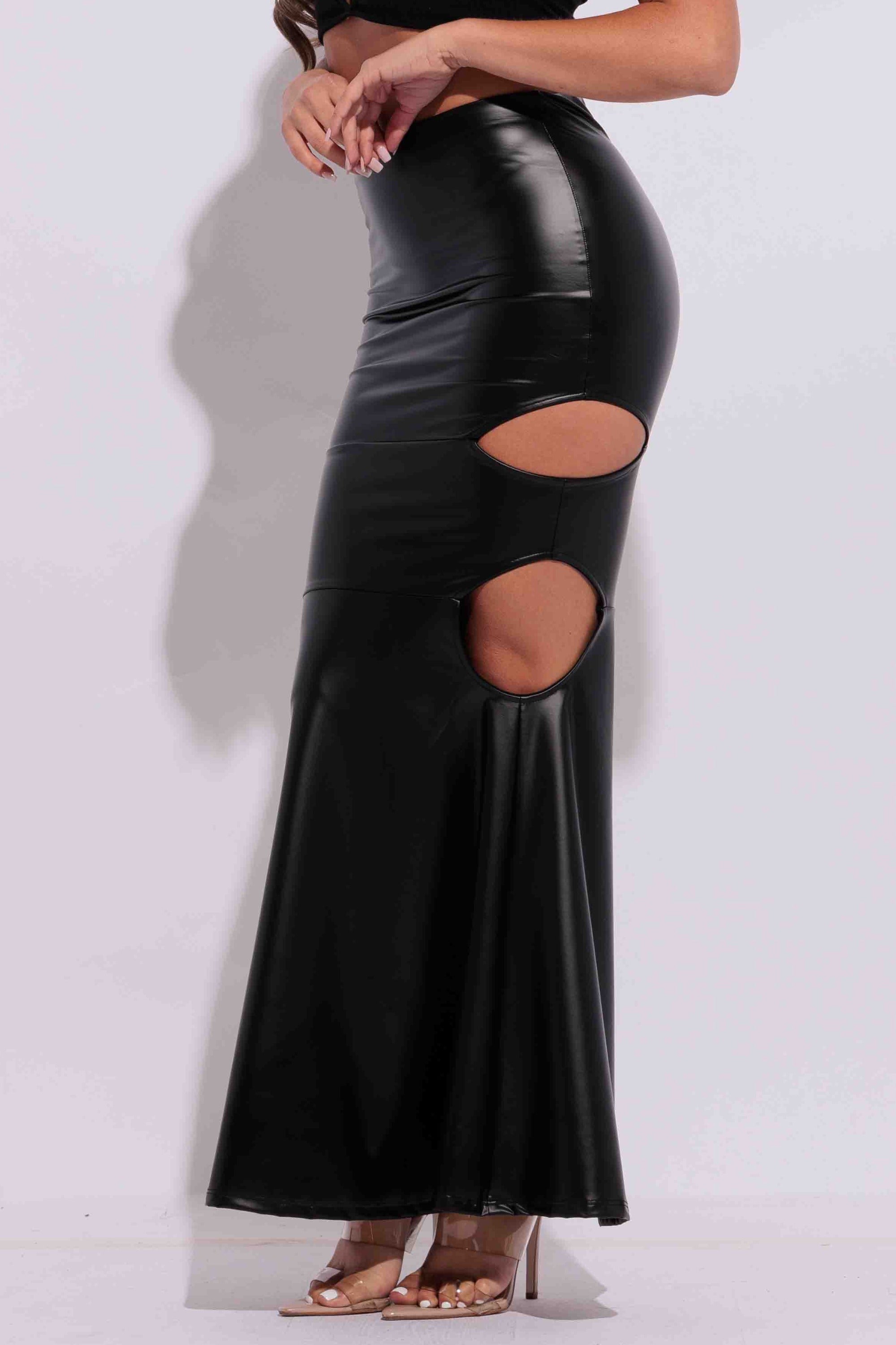 Elevate your bold style with our Side Cut Out Mermaid PU Skirt. The side cut-out detailing adds an edgy flair,...