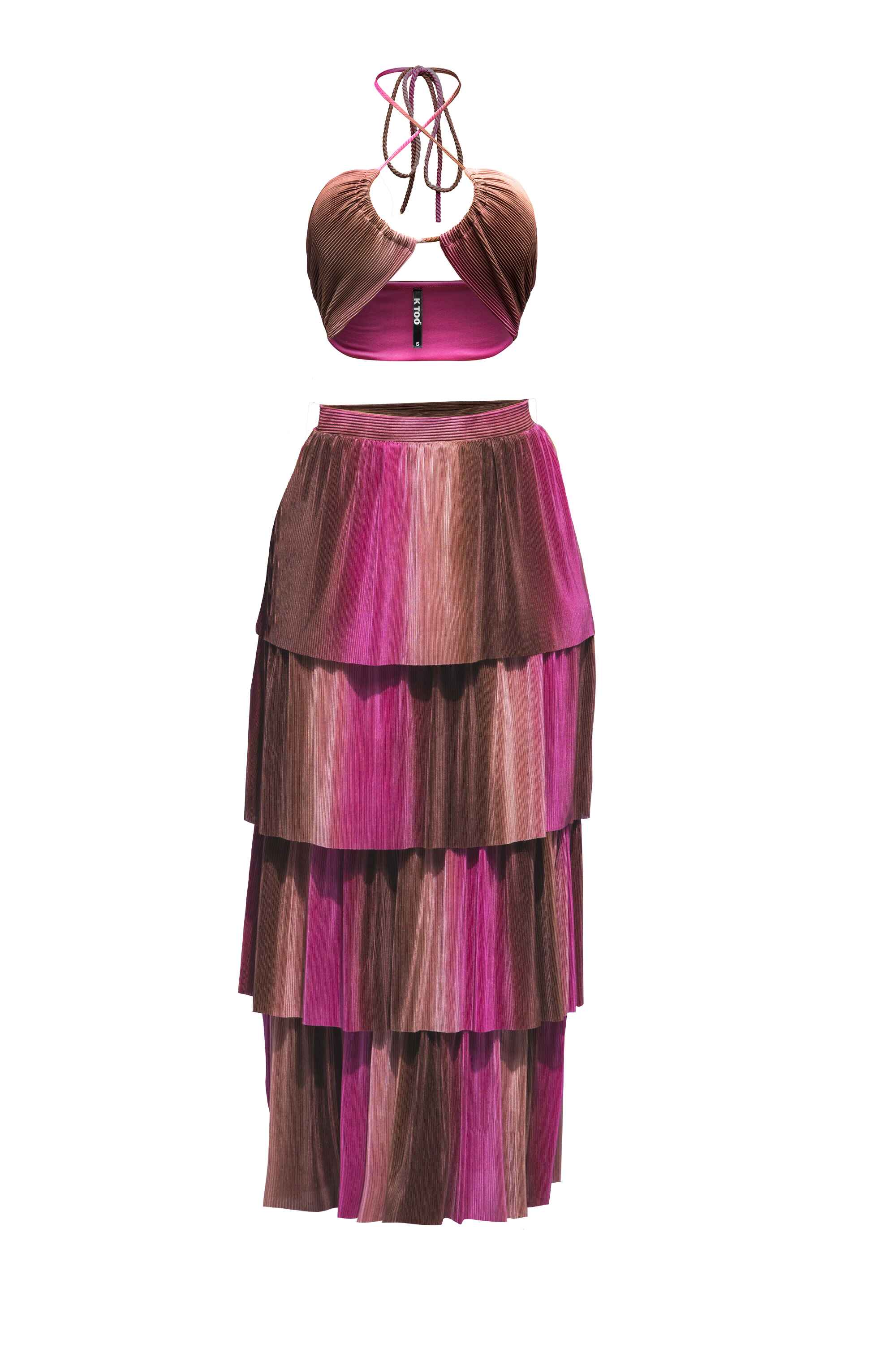 • Strap halter top • Layered maxi skirt • Multi color • Lining • SELF:97%Polyester 3%Spandex • LINNING:100%Polyester • Imported...