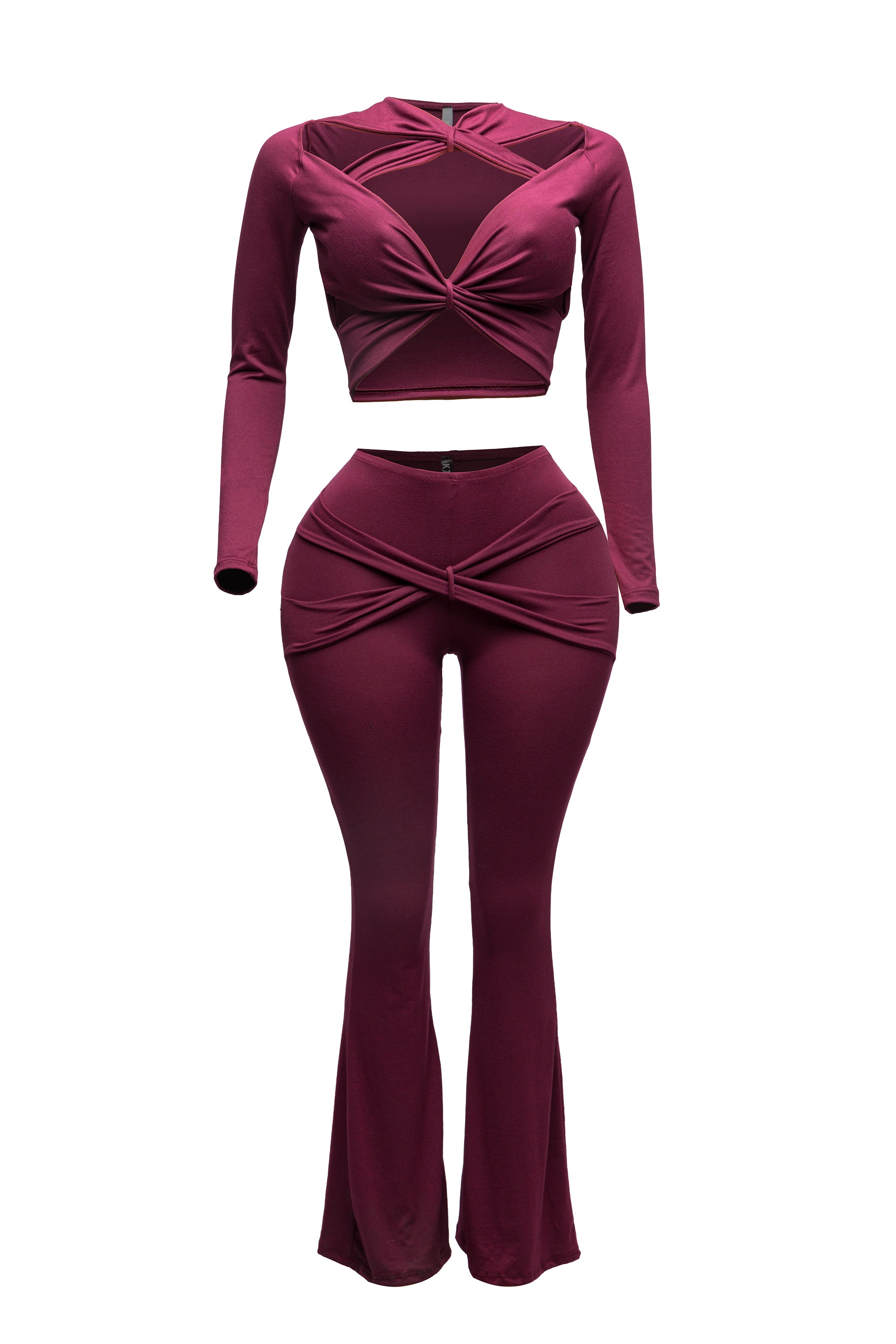 • Cross strappy • Cutout detail • Stretch • Long sleeve crop top • Bell bottom pants • Comfortable •...