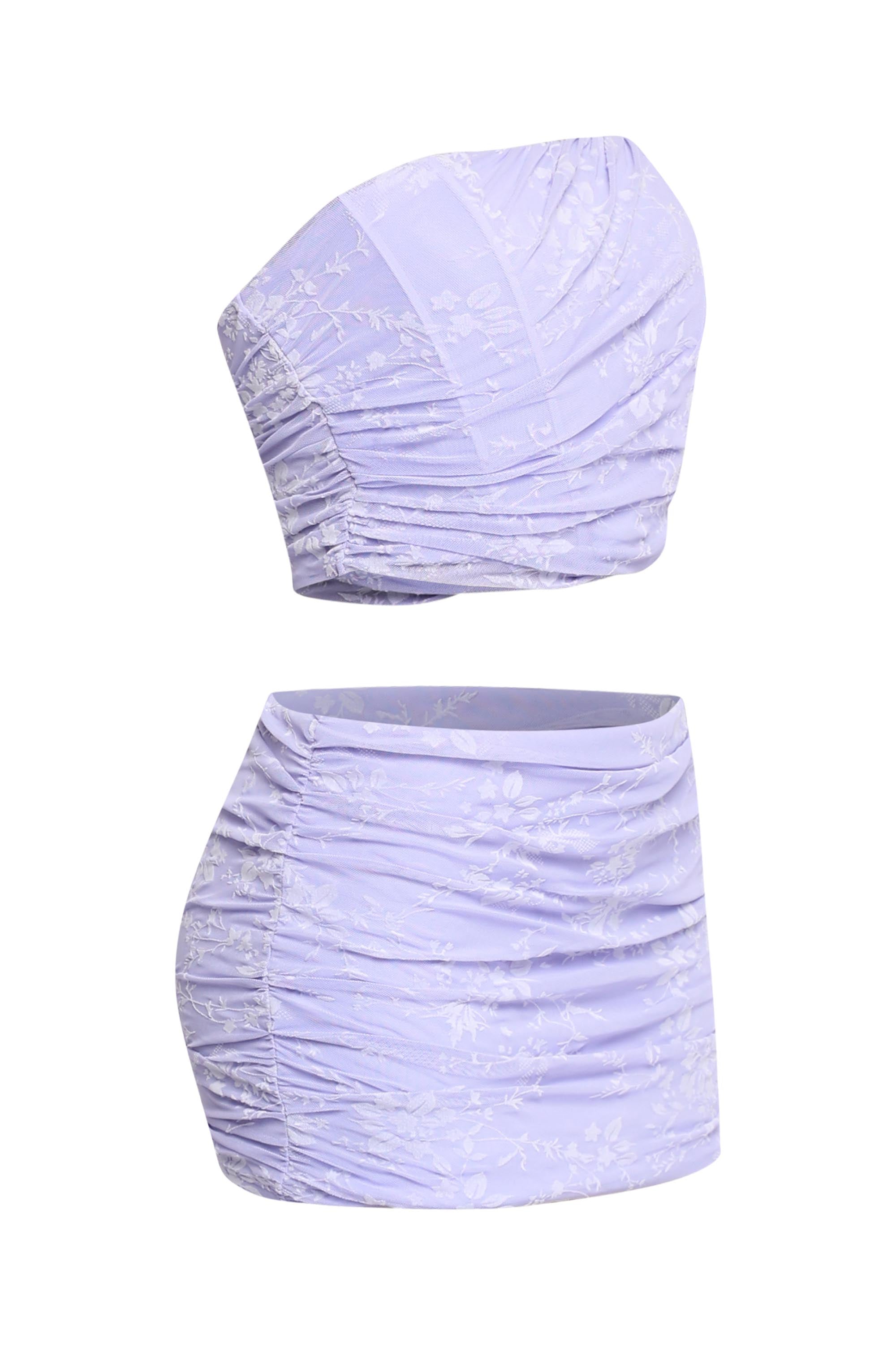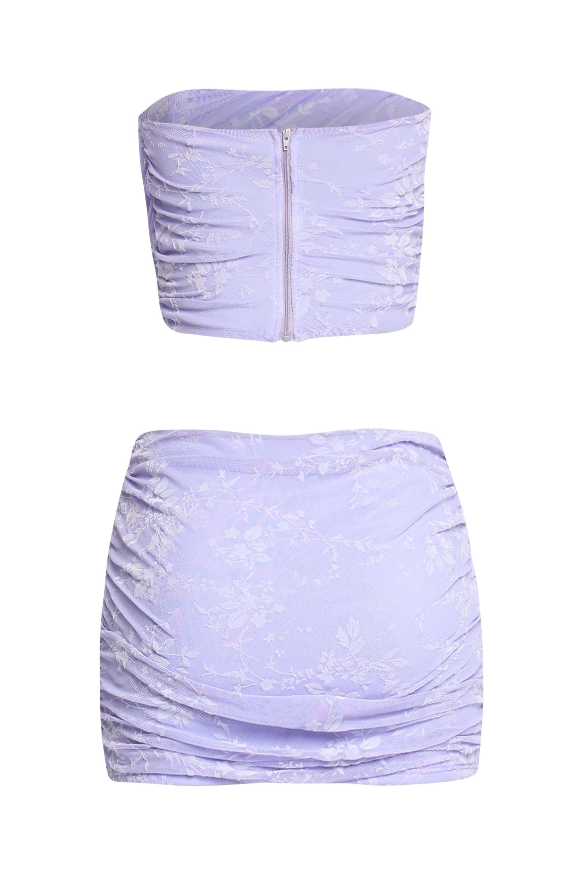 Your new weekend favorite just dropped. The Sundae Crushed Shirred Mini Set is serving sweet heat with its sculpted bandeau top and ruched mini skirt duo. Featuring delicate floral jacquard texture, a boned bodice for structure, and flattering gathered details throughout, this set brings just the right amount of stretch and curve-contour magic. Whether you're dancing through a festival or headed to rooftop brunch, this look brings sun-soaked main character energy in every color.