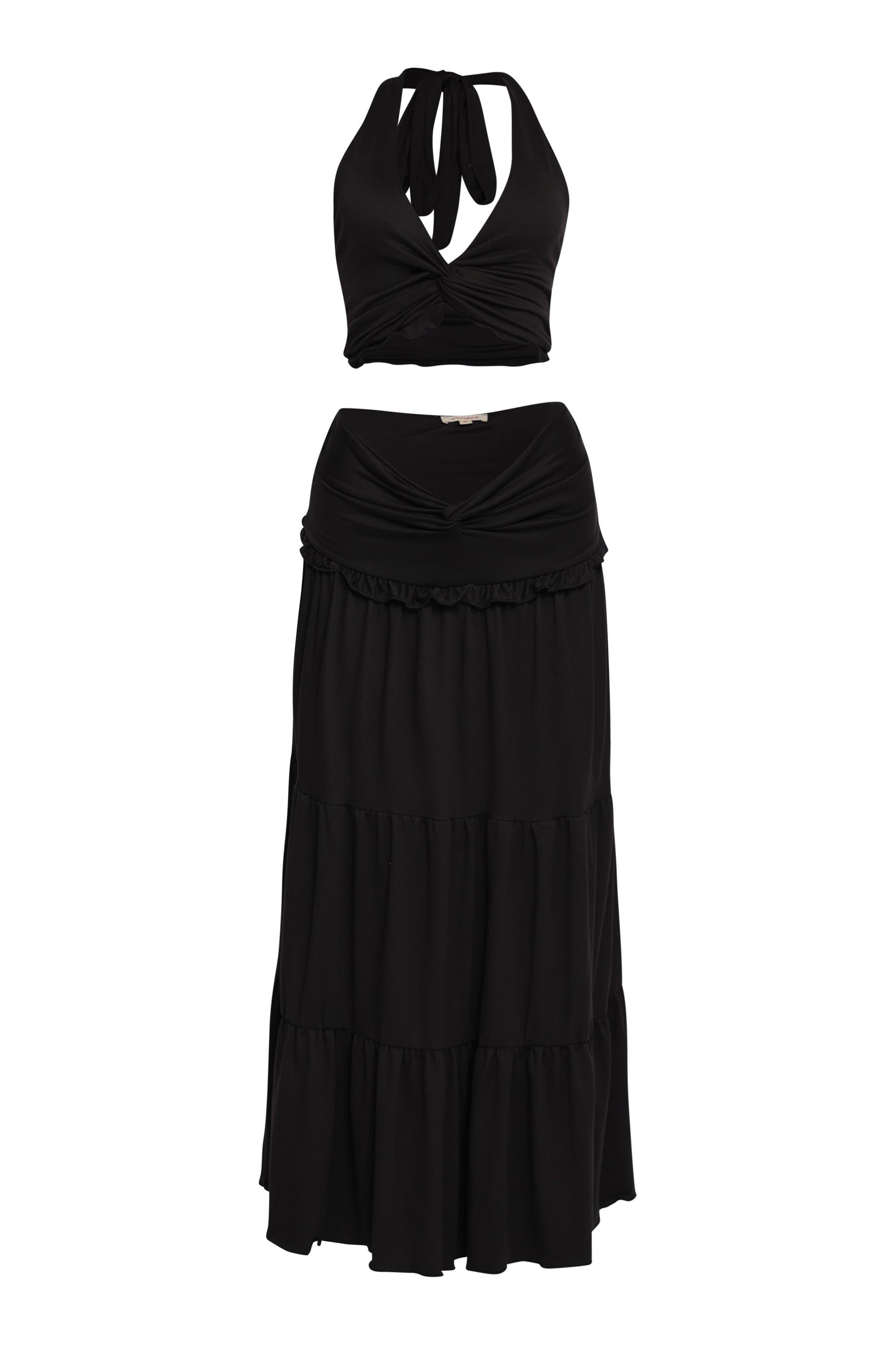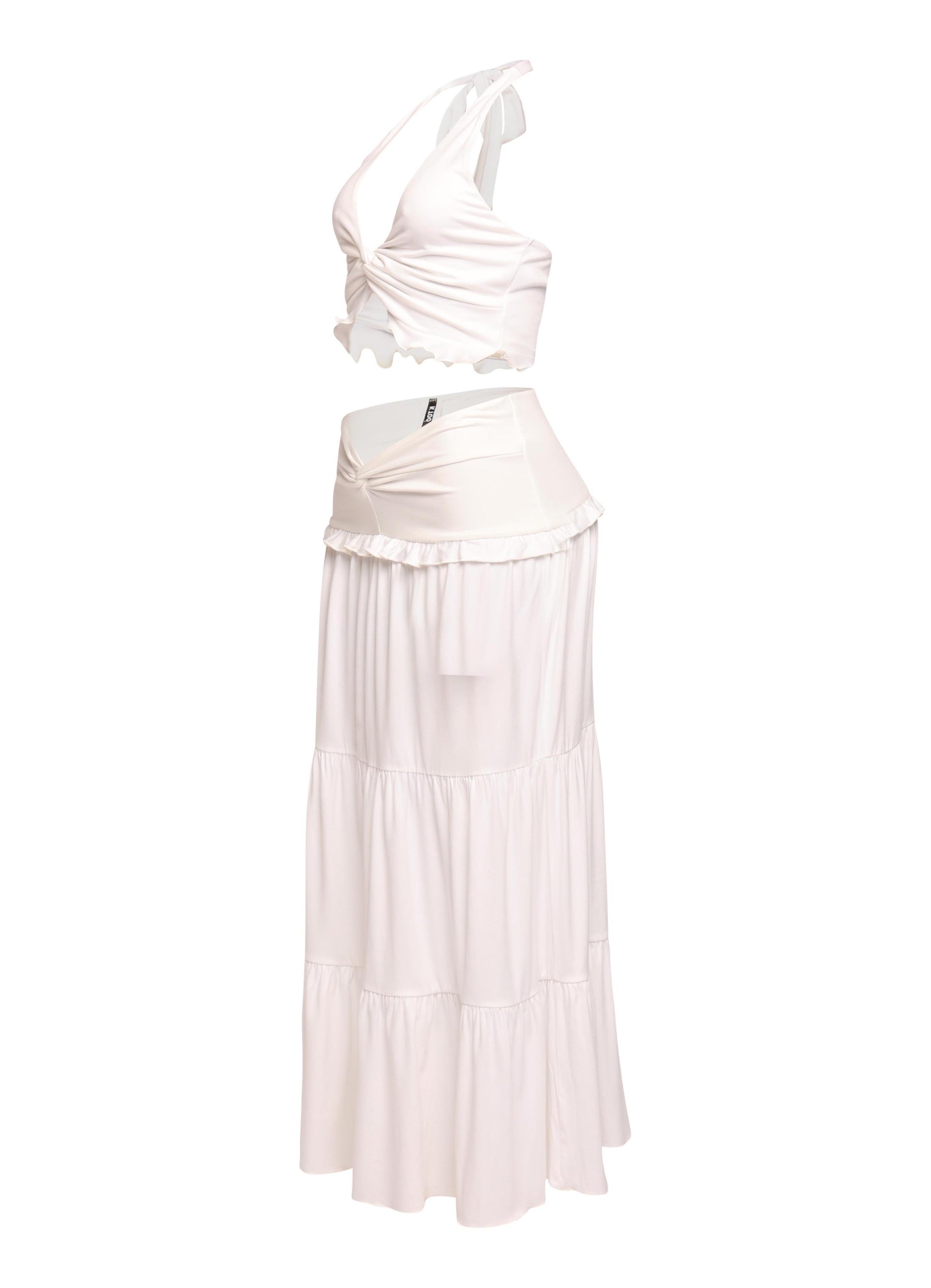 Say hello to soft drama. The Sunspell Twist Halter Maxi Skirt Set brings effortless movement with a hint of sultry....