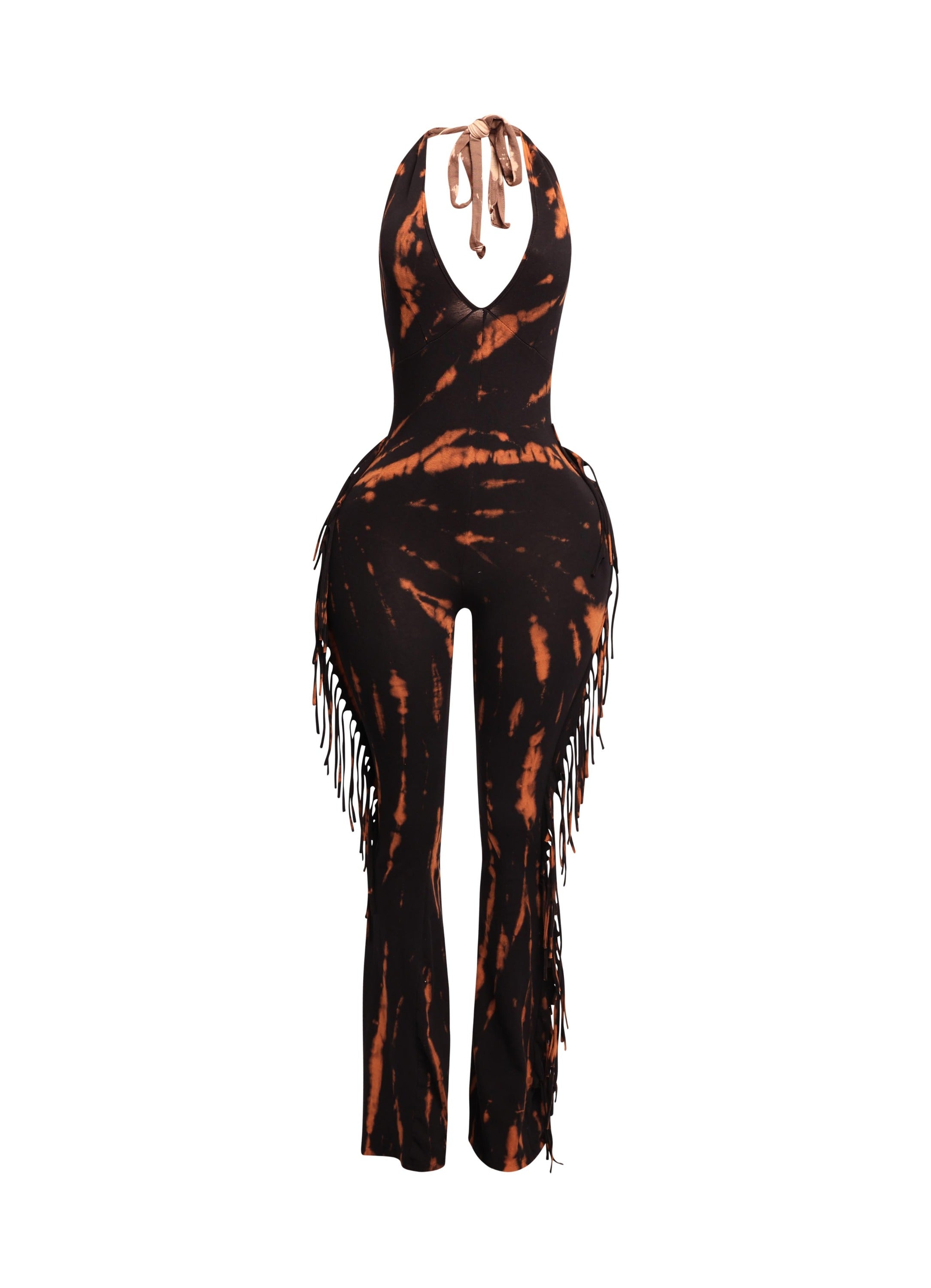 Halter NeckSleevelessUnlined Pull onStraight hemInseam: 33"Bodycon / Very fitted, hugs curvesStretchMore Colors AvailableAvailable in : S/M/L95% Cotton 5% SpandexSide fringe detailed...