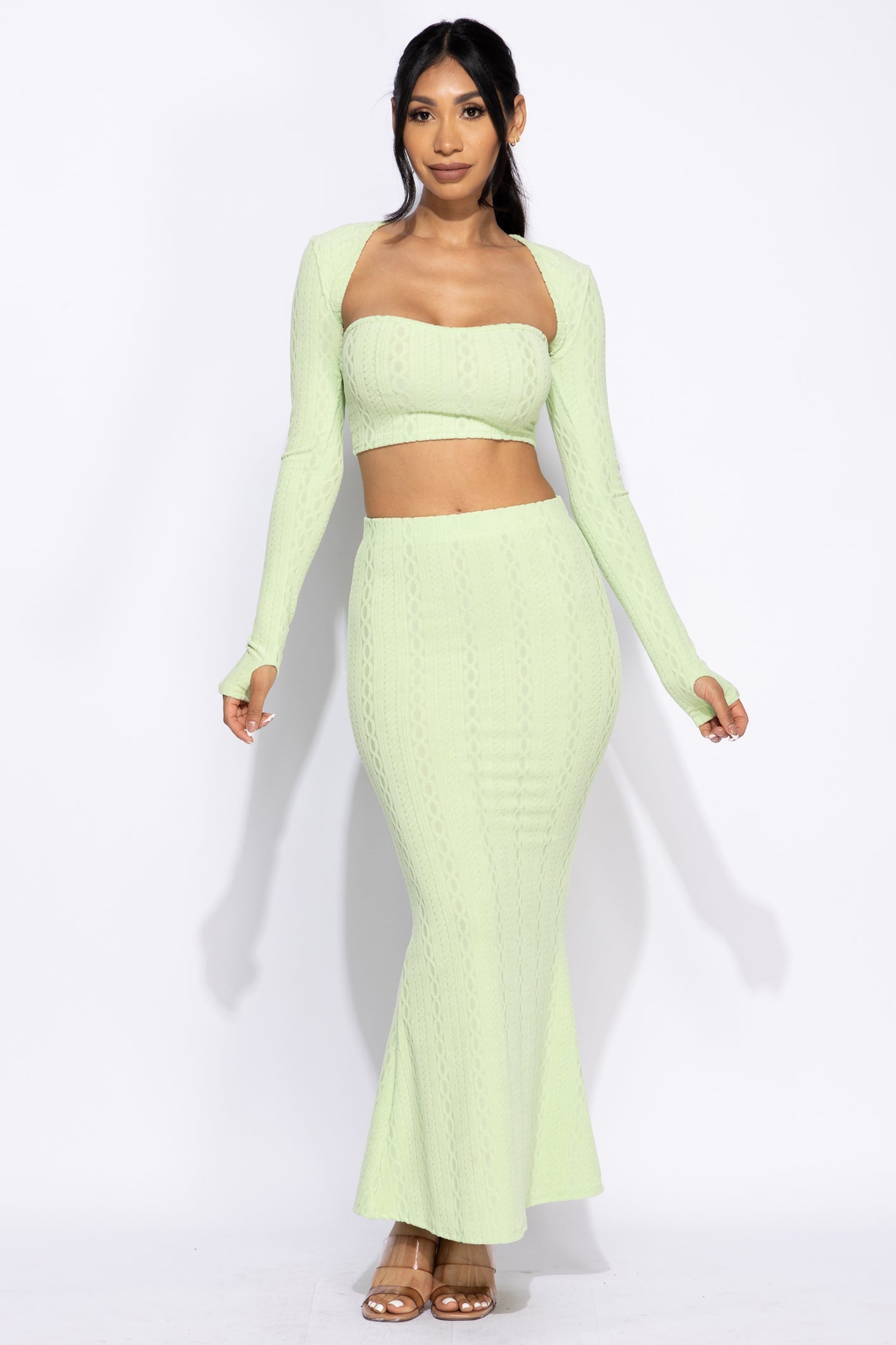Discover chic versatility with our Tube Top, Bolero Top, Maxi Skirt Set. Crafted from stretch fabric, this 3-piece ensemble features...
