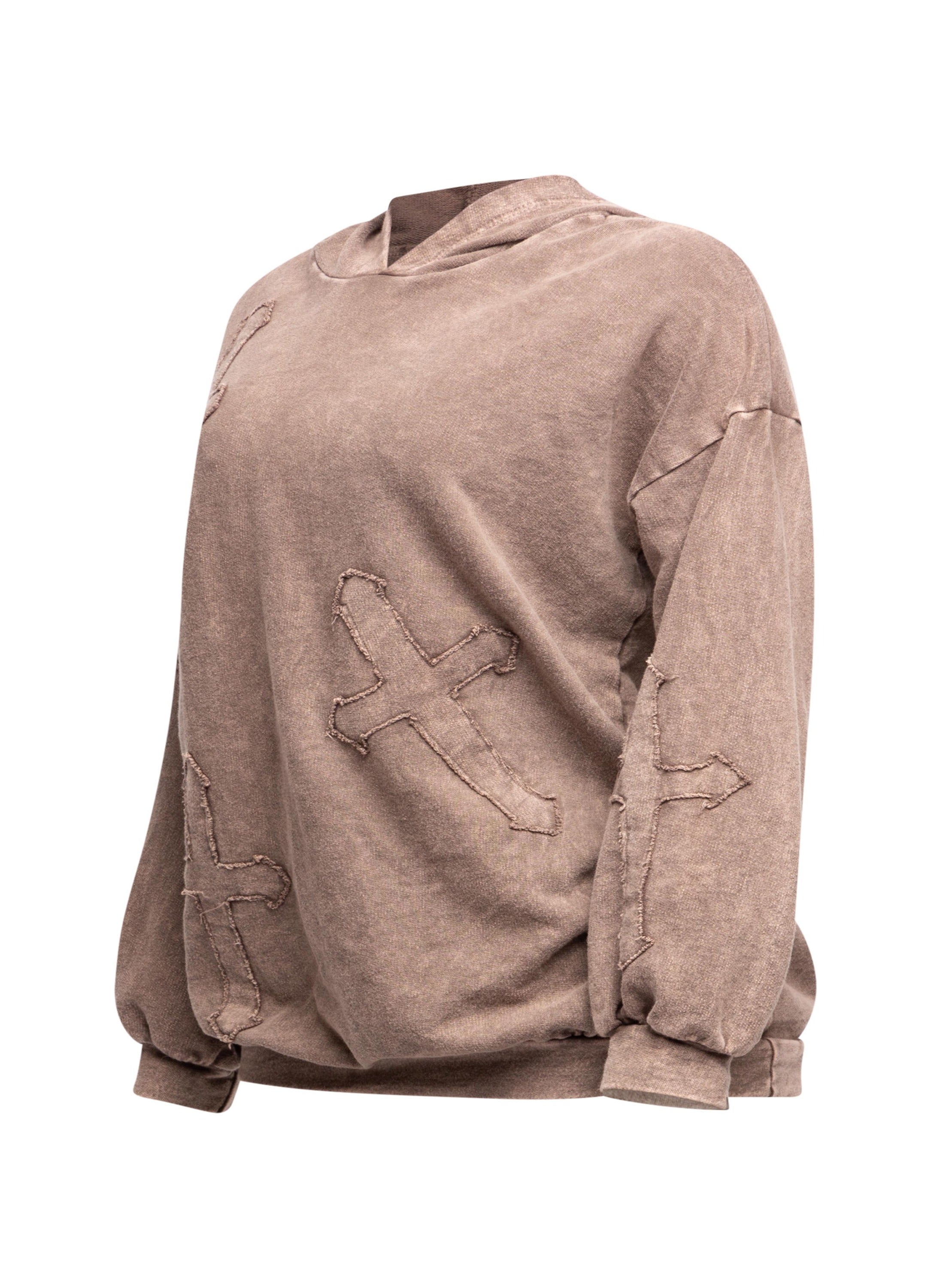 Washed hooded tunic with cross patches