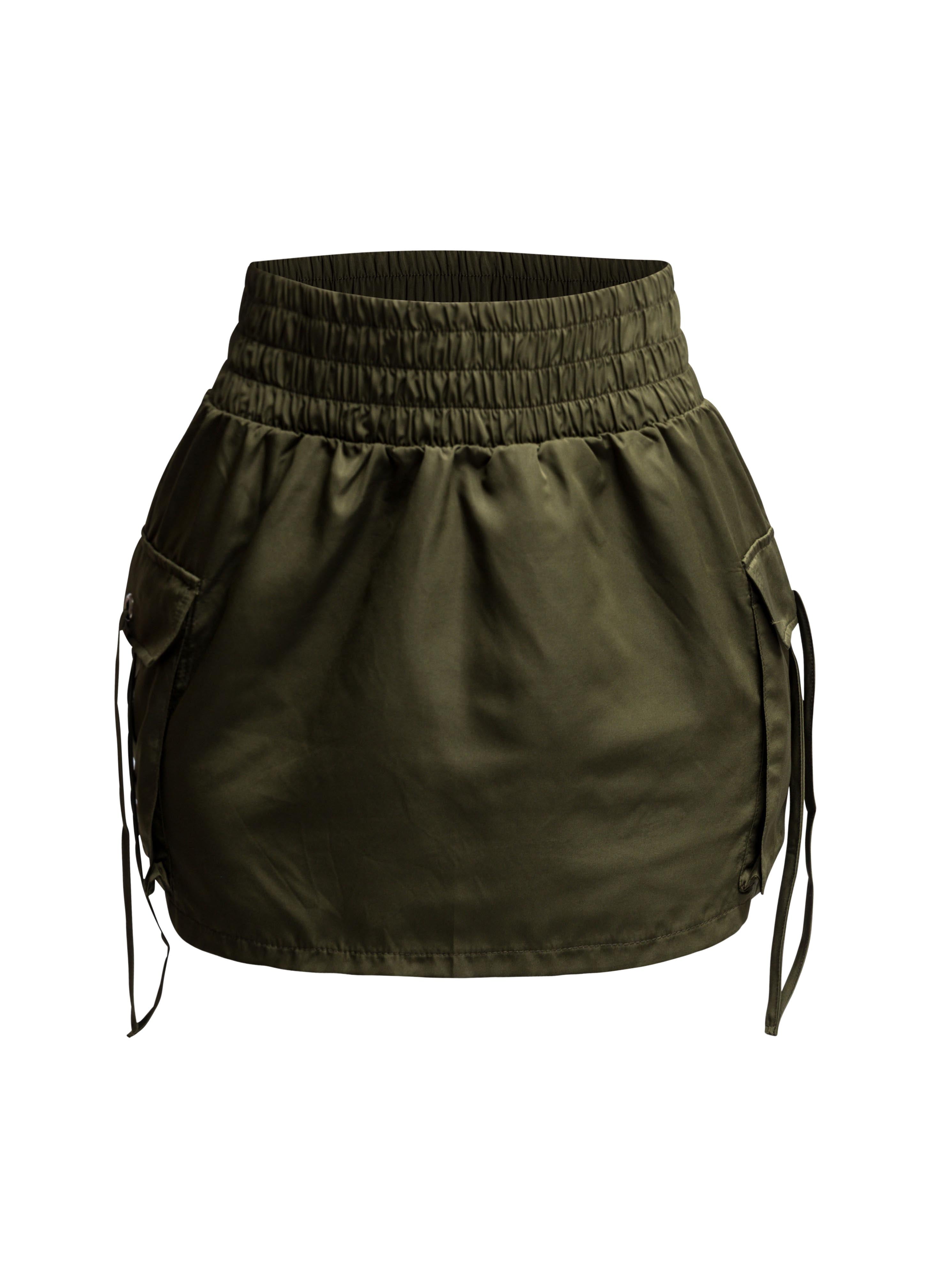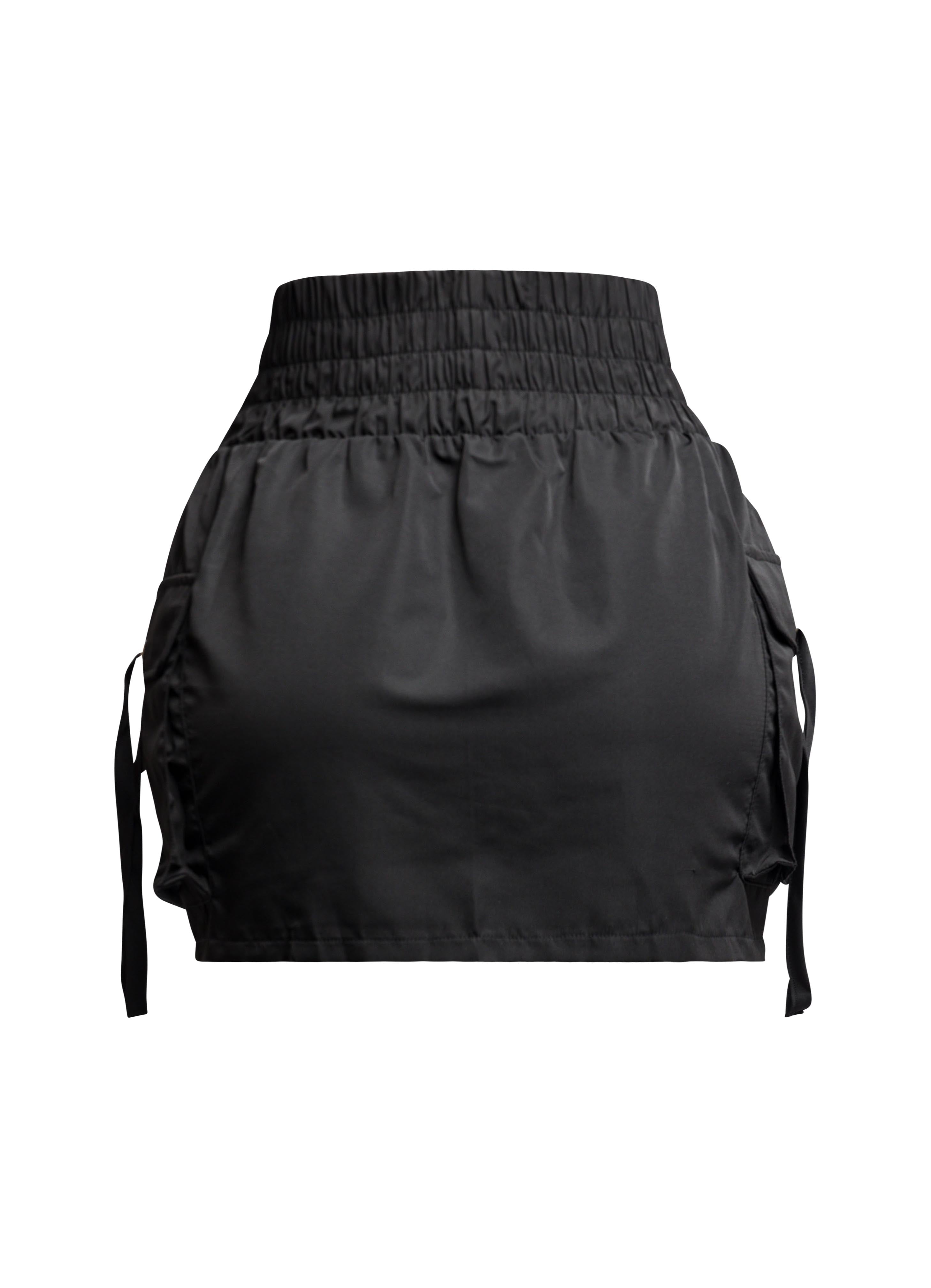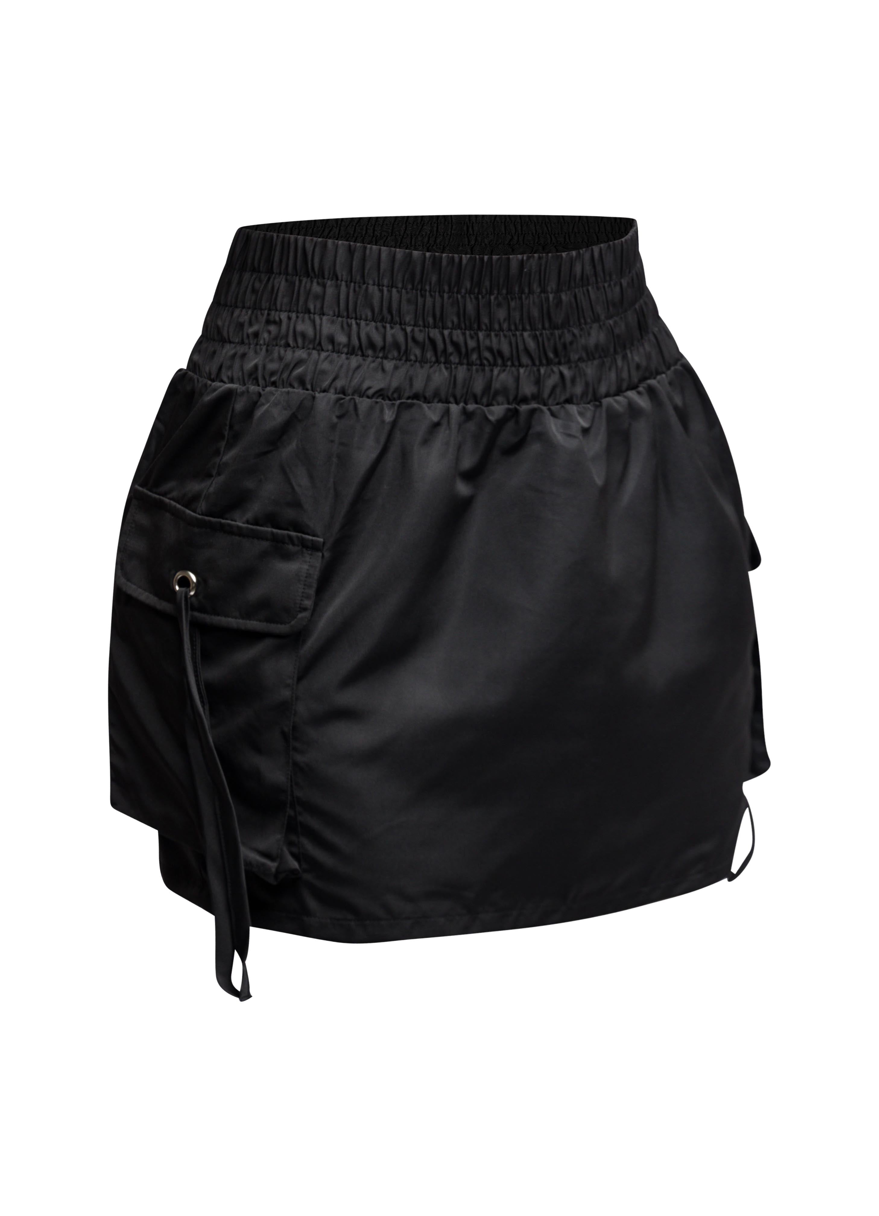 Wide waistband mini skirt with pockets